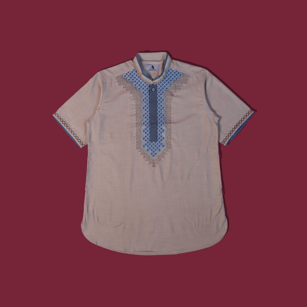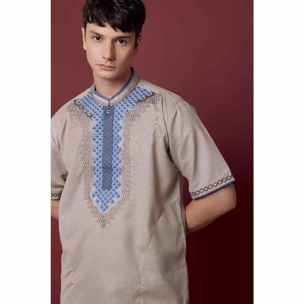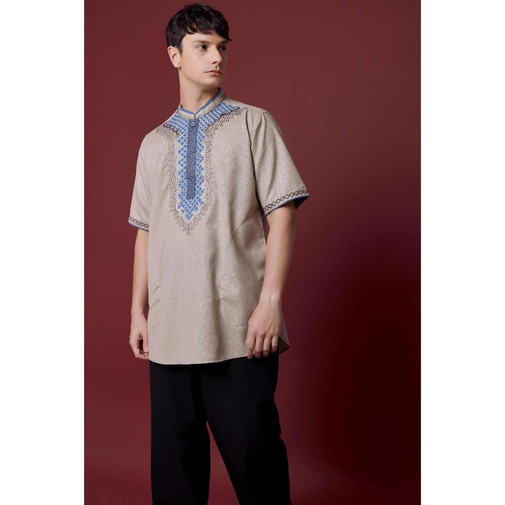 Al-AchwAn Baju Koko Kurta Bana Soft Brown Mix Blue
