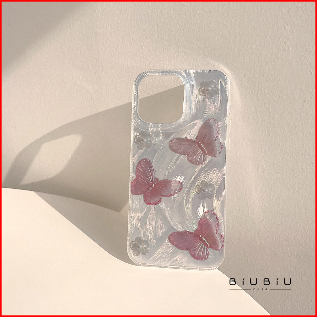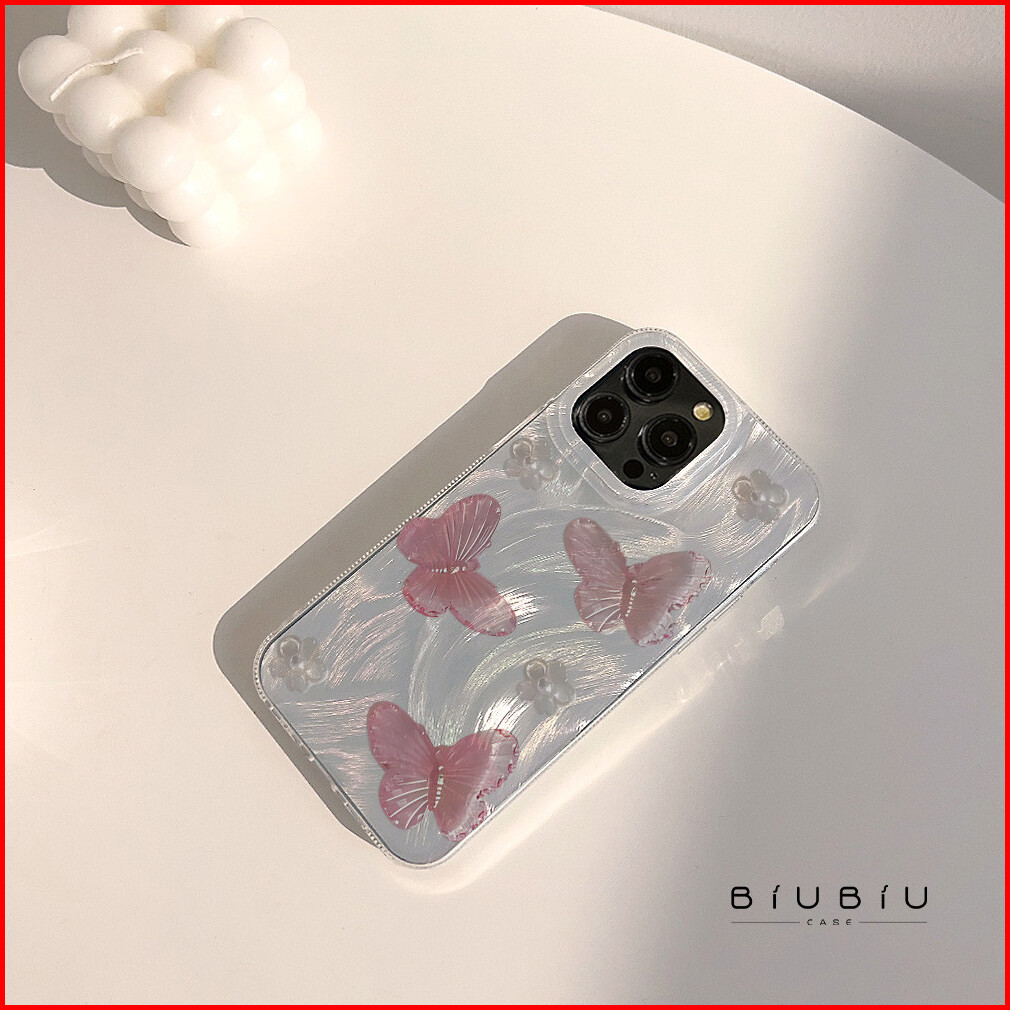 Biu Biu Case Three Butterflies Silver Feather Hologram Case Compatible With Iphone Iphone 13 11 16 Pro 11promax 7 8 Plus