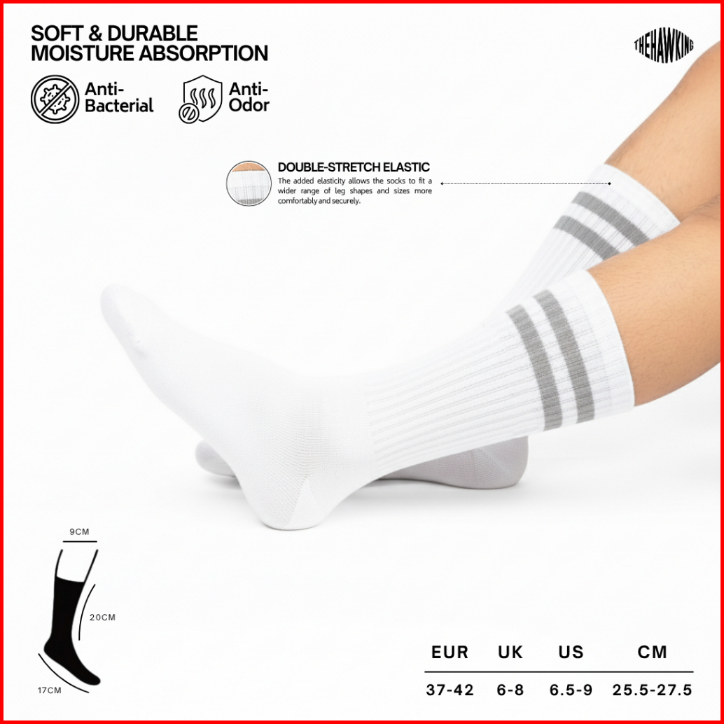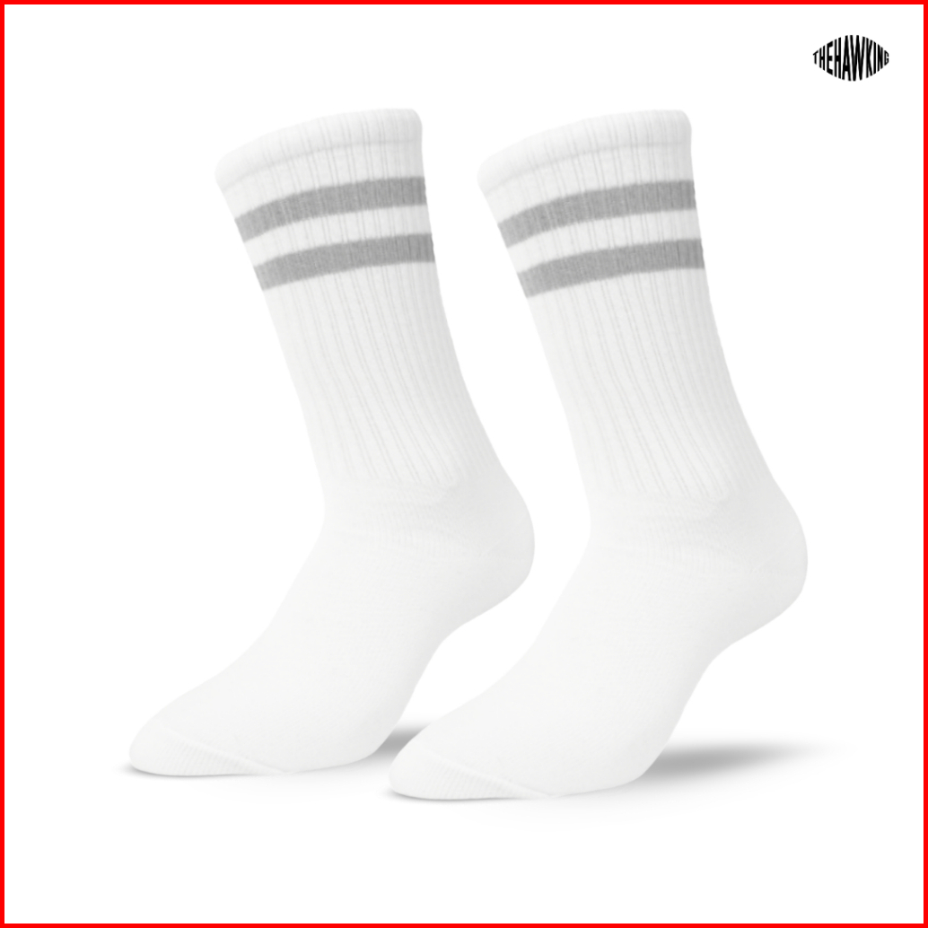 The Hawking Kaos Kaki Oldschool Mid Calf Stripe 2 Light Grey Base White