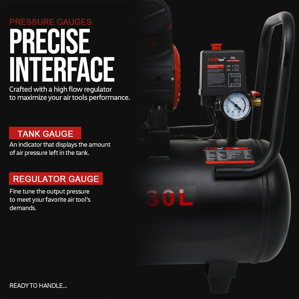 JLD 1HP 30L Oilless Air Compressor Silent Kompresor Angin Mini Listrik Tanpa Oli