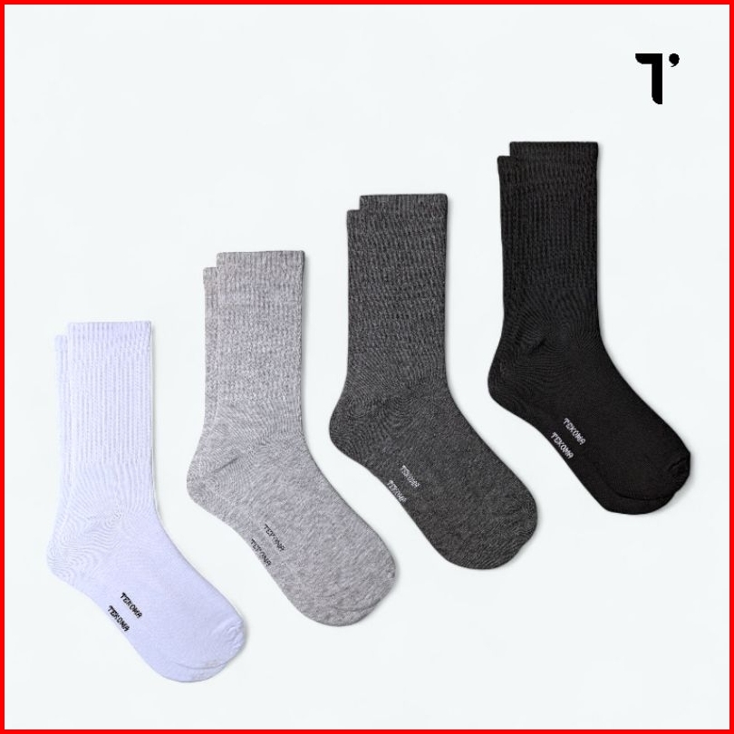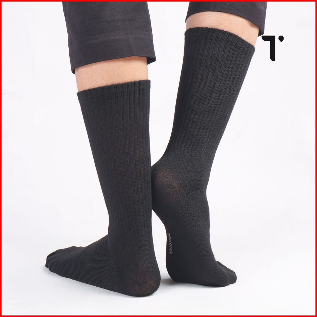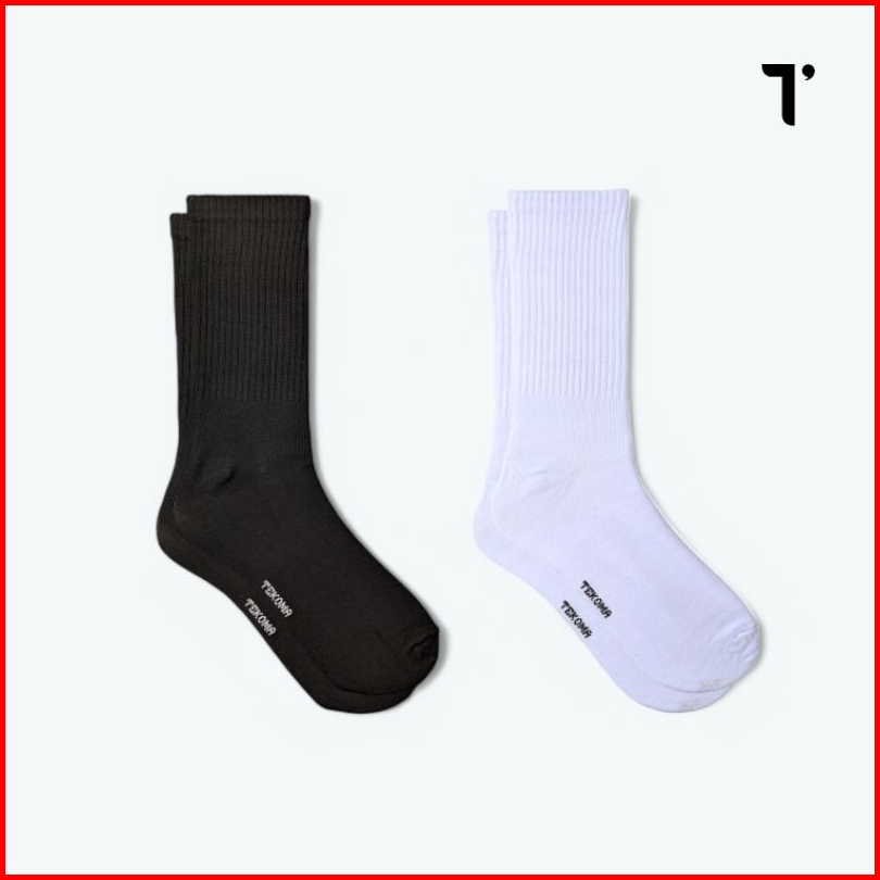 Tekoma Kaos Kaki Sport Panjang Setengah Betis Bahan Katun One Size Dewasa Black And White