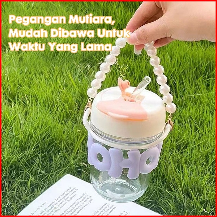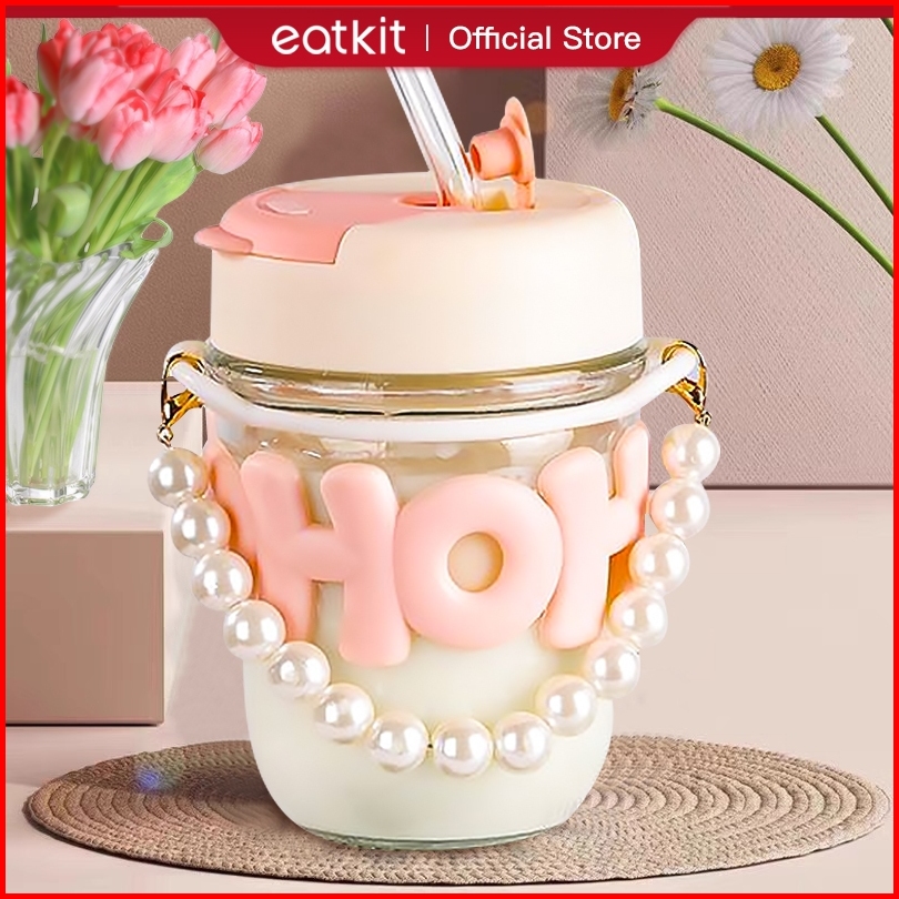 Eatkit Tumbler Kaca Aesthetic Gelas Hoho 350ml Gelas Ala Korea Simple Elegan Cangkir Kaca Coffe