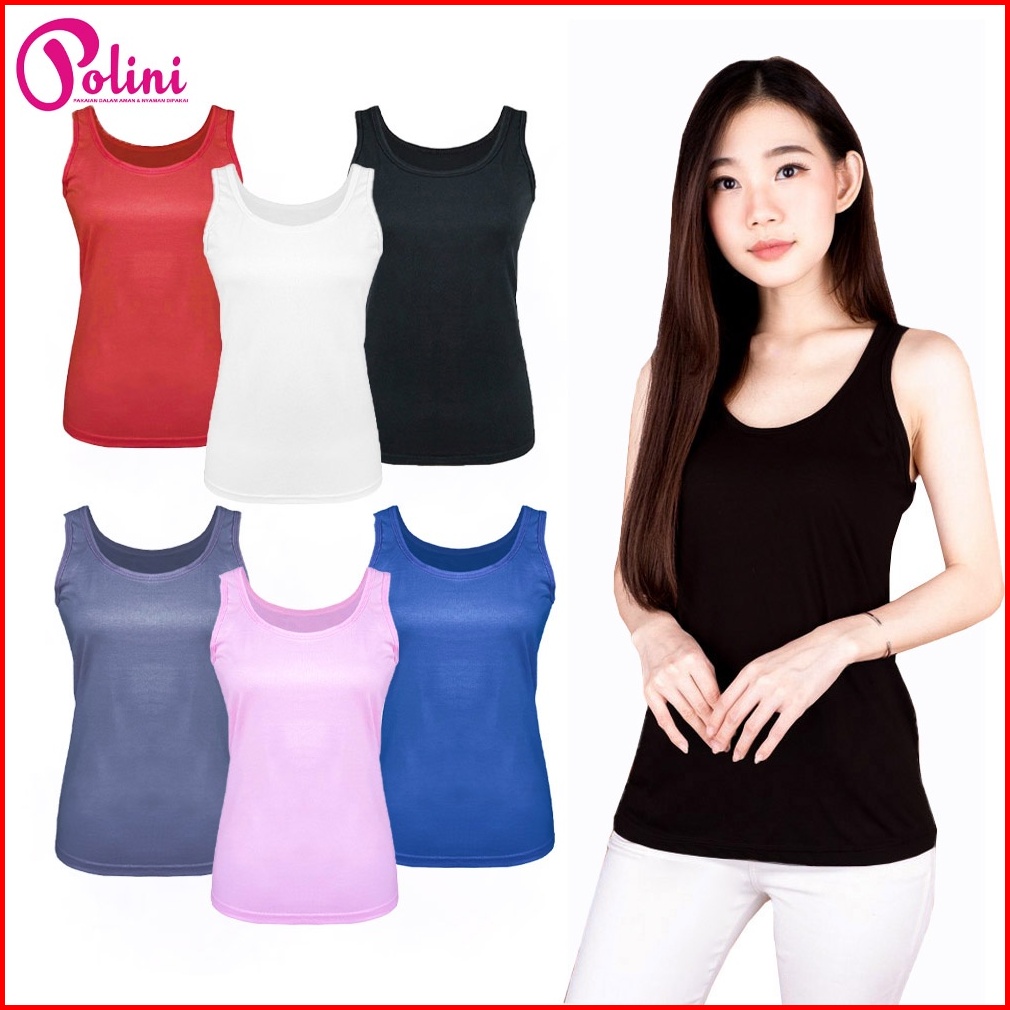 Polini Tanktop Wanita Bahan Katun Atasan Singlet Wanita Tali Besar