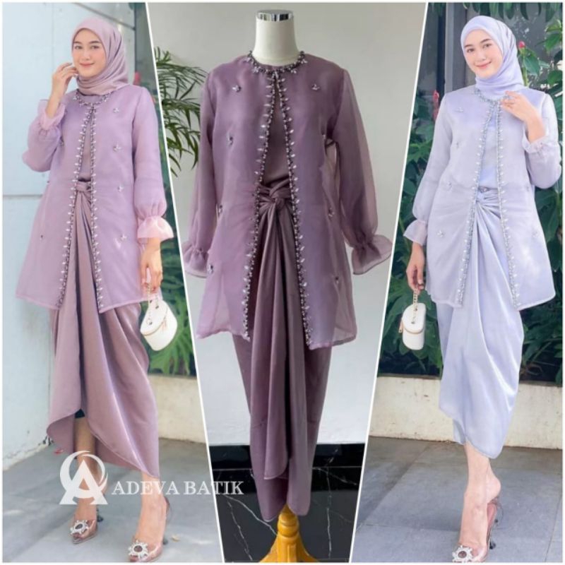 (ADA JUMBO) New Oneset Jemma Organza Terbaru Setelan Kondangan Kekinian Rok Lilit Bahan Maxmara OOTD Kekinian Keren Wani
