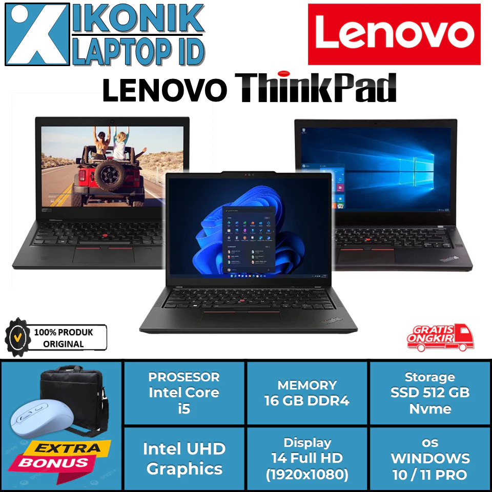 Laptop Tipis Ringan Lenovo Thinkpad Intel Core i5 Ram 16GB Ssd 512 GB Second Mulus Bergaransi