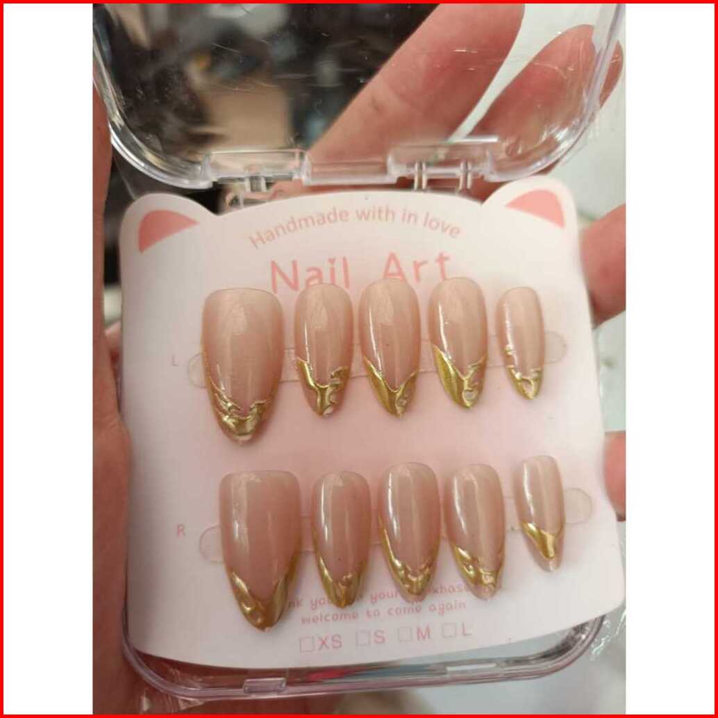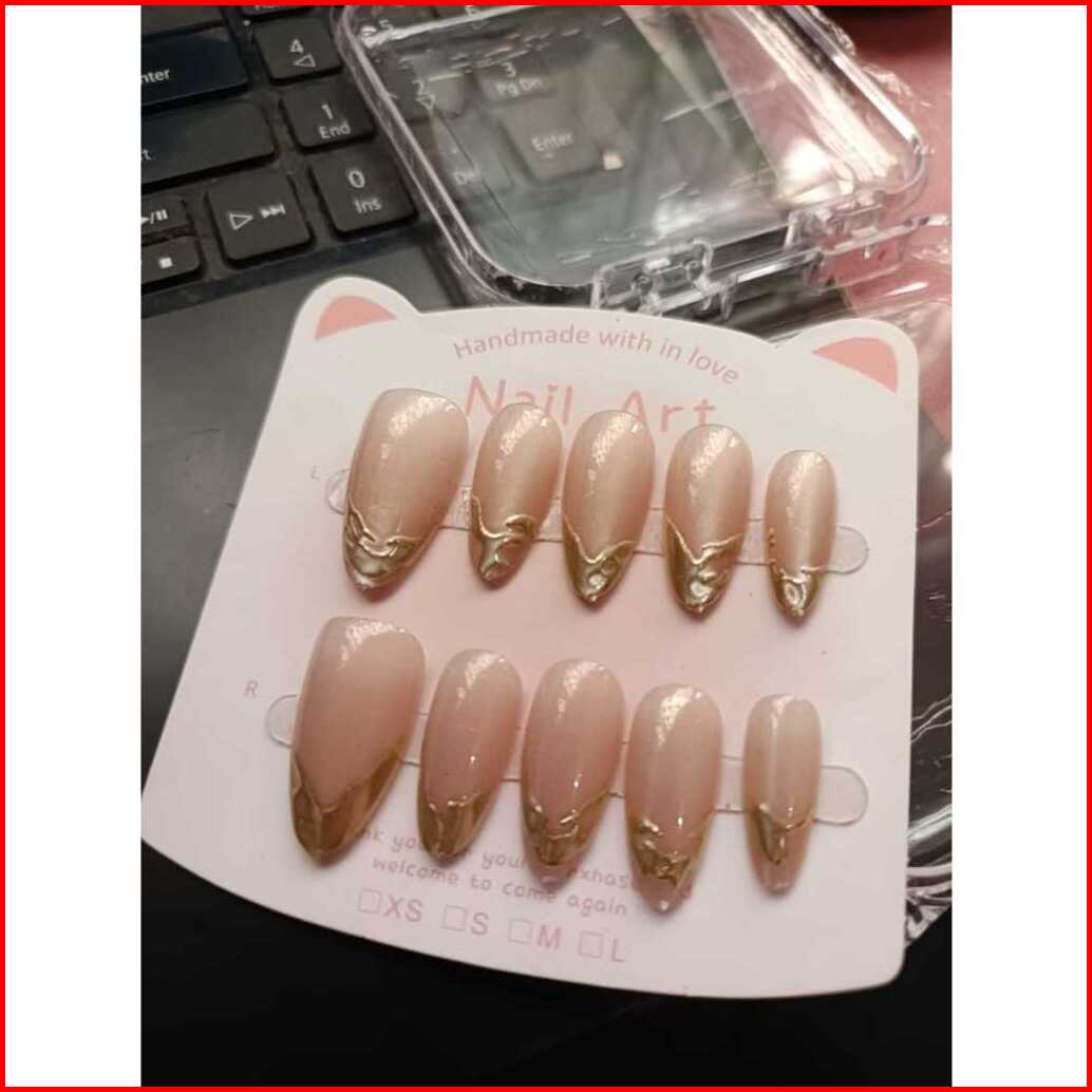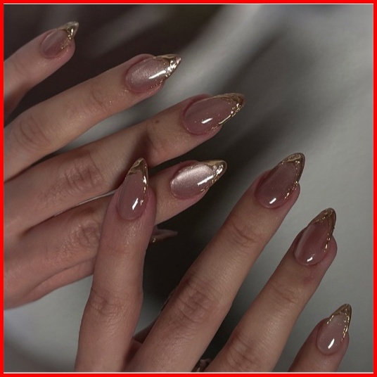 Kuku Palsu Cet Eye Almond Lancip Isi 10 Nude Hiasan Di Ujungnya Mewah Lengkap Dengan Lem Bandung