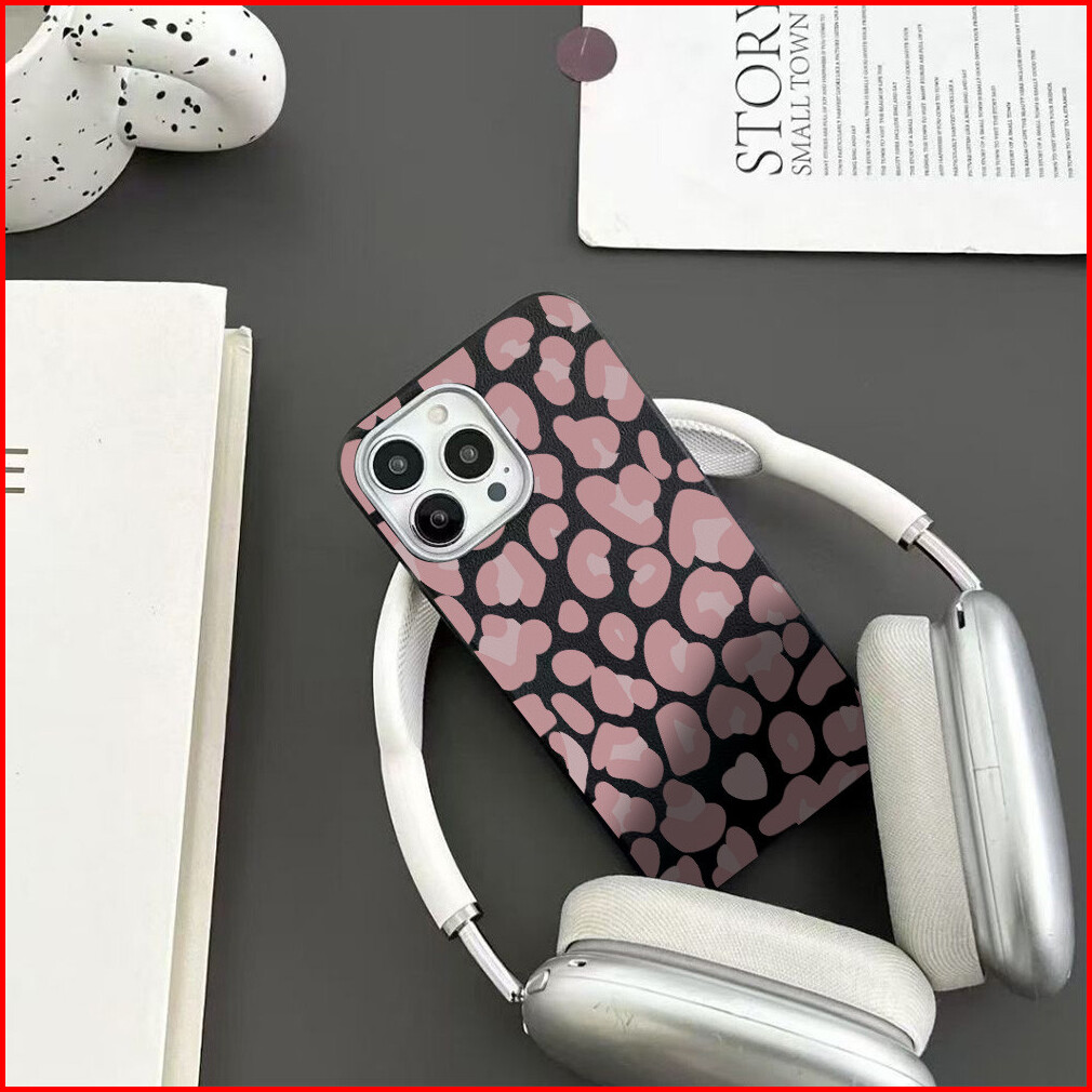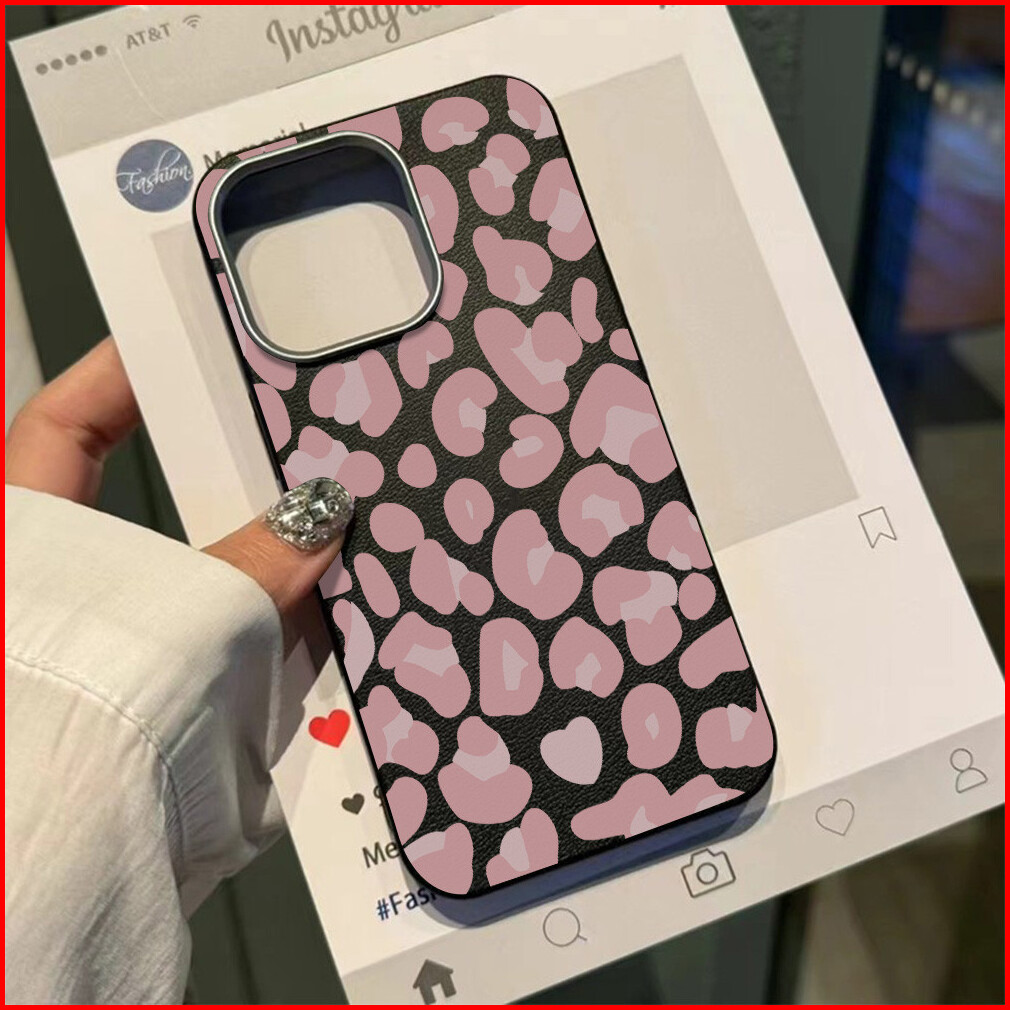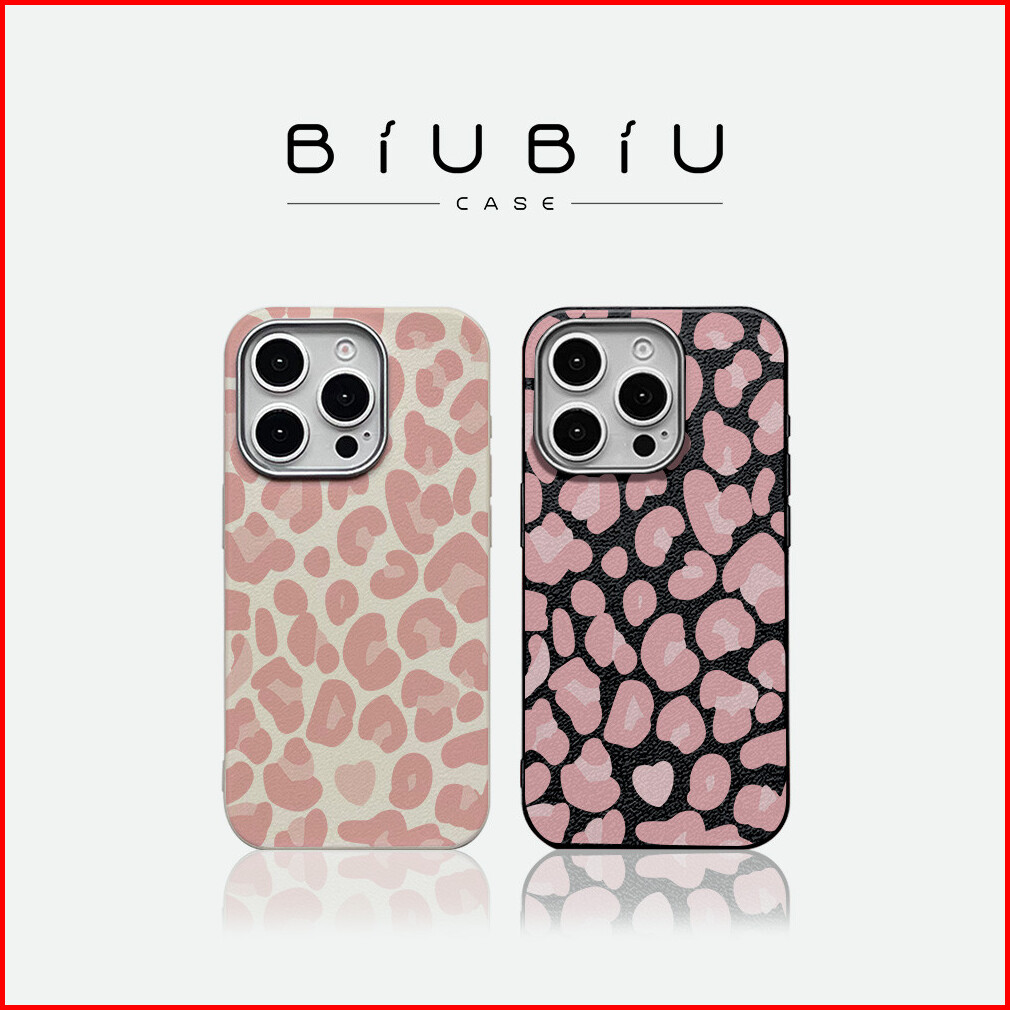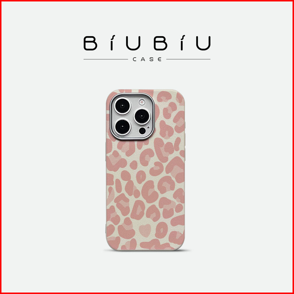 Biu Biu Case Premium Tpu Luxury Metal Lens Frame Leather Texture Sweet Pink Leopard Case For Iphone 13 14 15 12 11 16 Pr