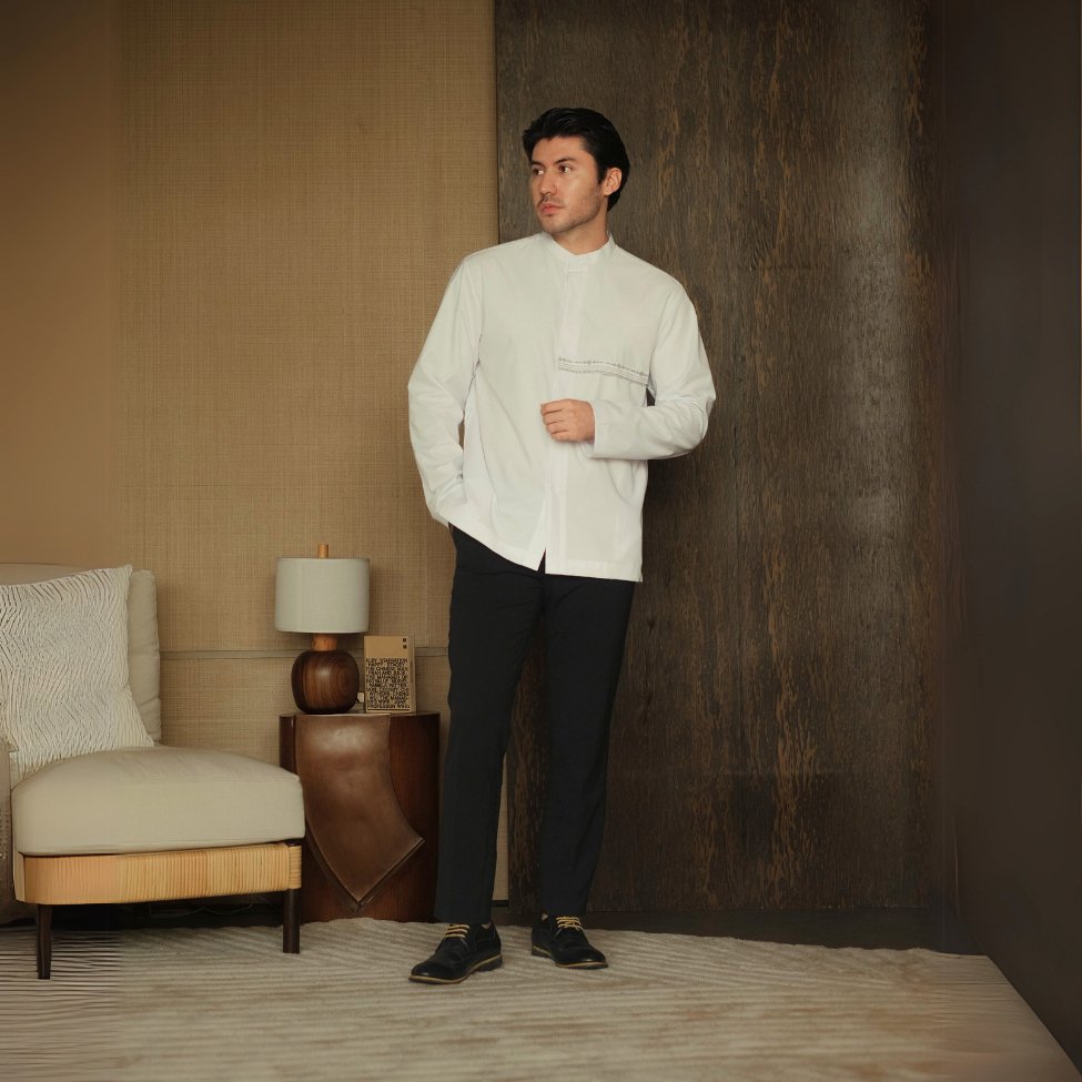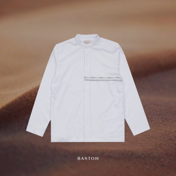 BASTOH Kemeja Koko Pria Zavian Putih Lengan Panjang