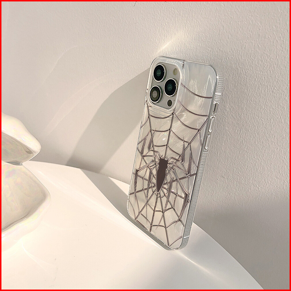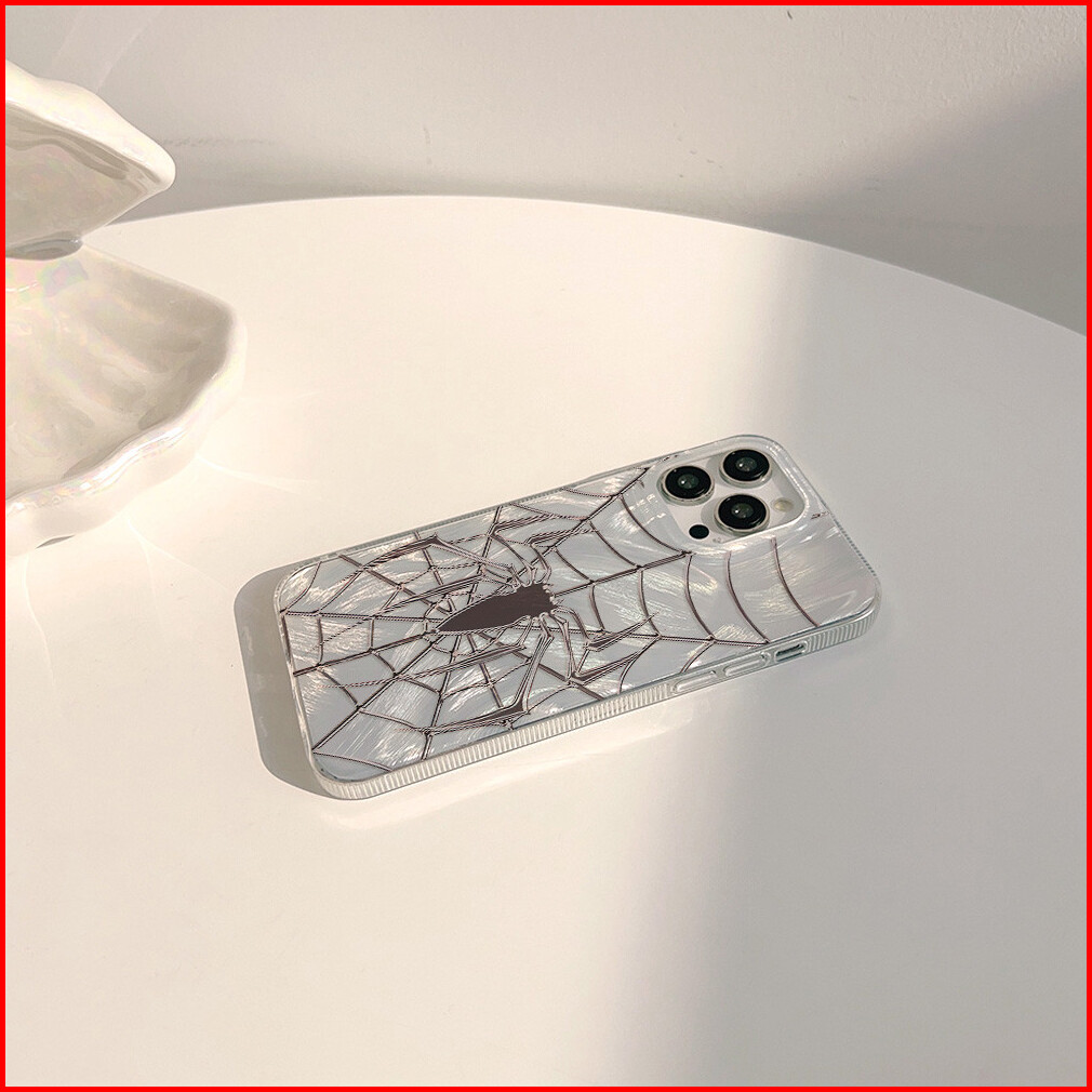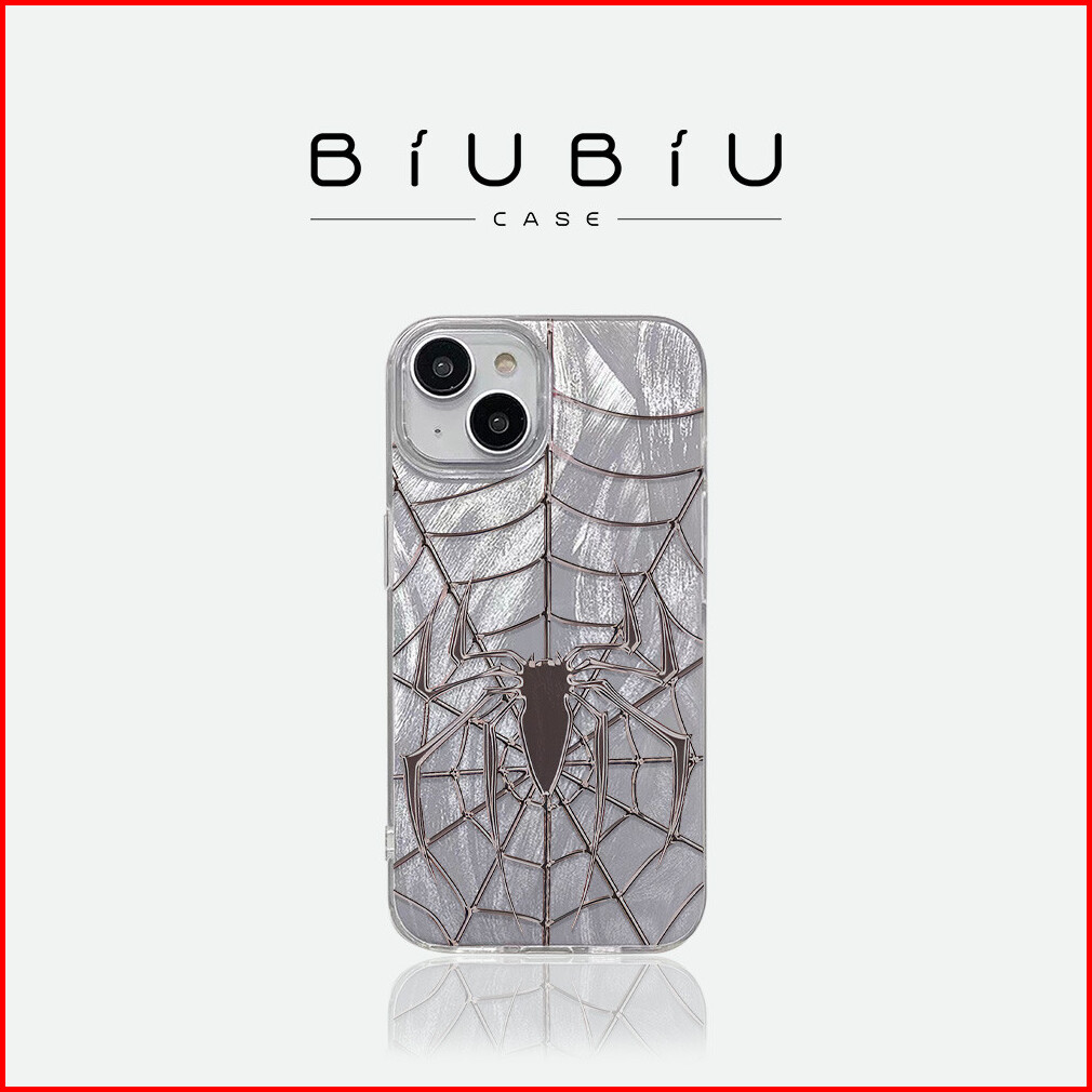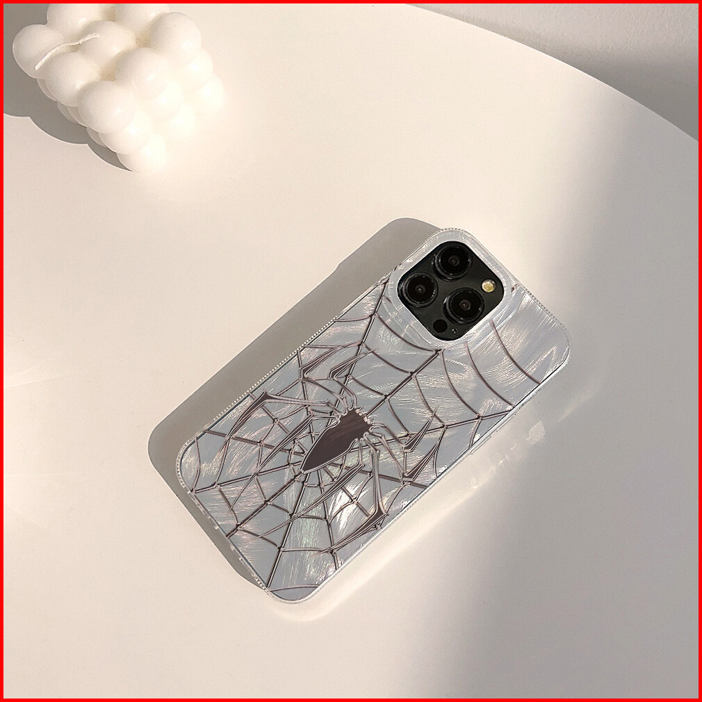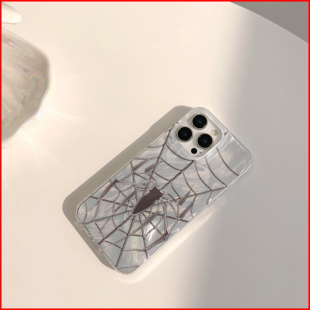Biu Biu Case Silver Feather Hologram Spider Web Case For Iphone 11 12 13 14 15 Plus Pro Promax 7 8 Se 7plus 8plus X Xs X