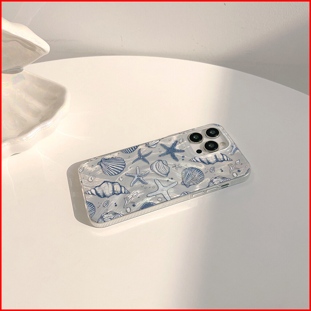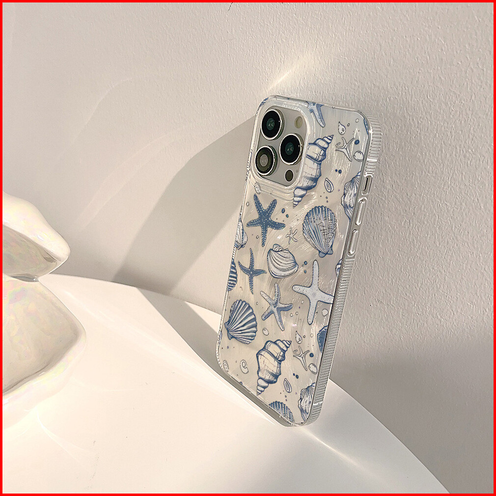 Biu Biu Case Silver Feather Hologram Blue Starfish With Shells Case For Iphone 11 12 13 14 15 Plus Pro Promax 7 8 Se 7pl