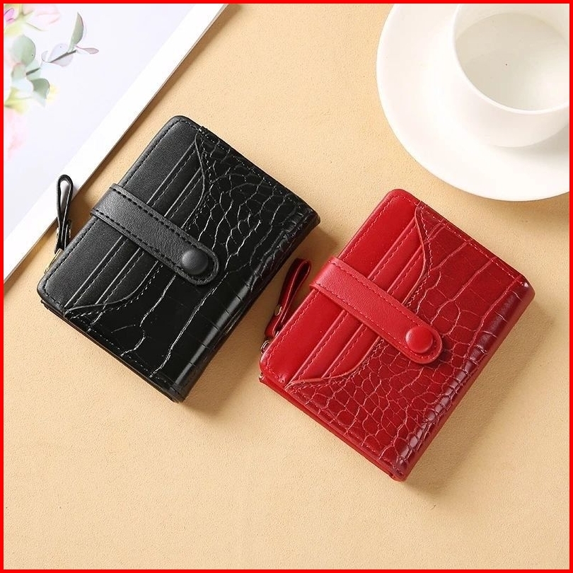 Dompet Lipat Wanita Silvania Croco Leather Glossy Slot Kartu Dan Coin