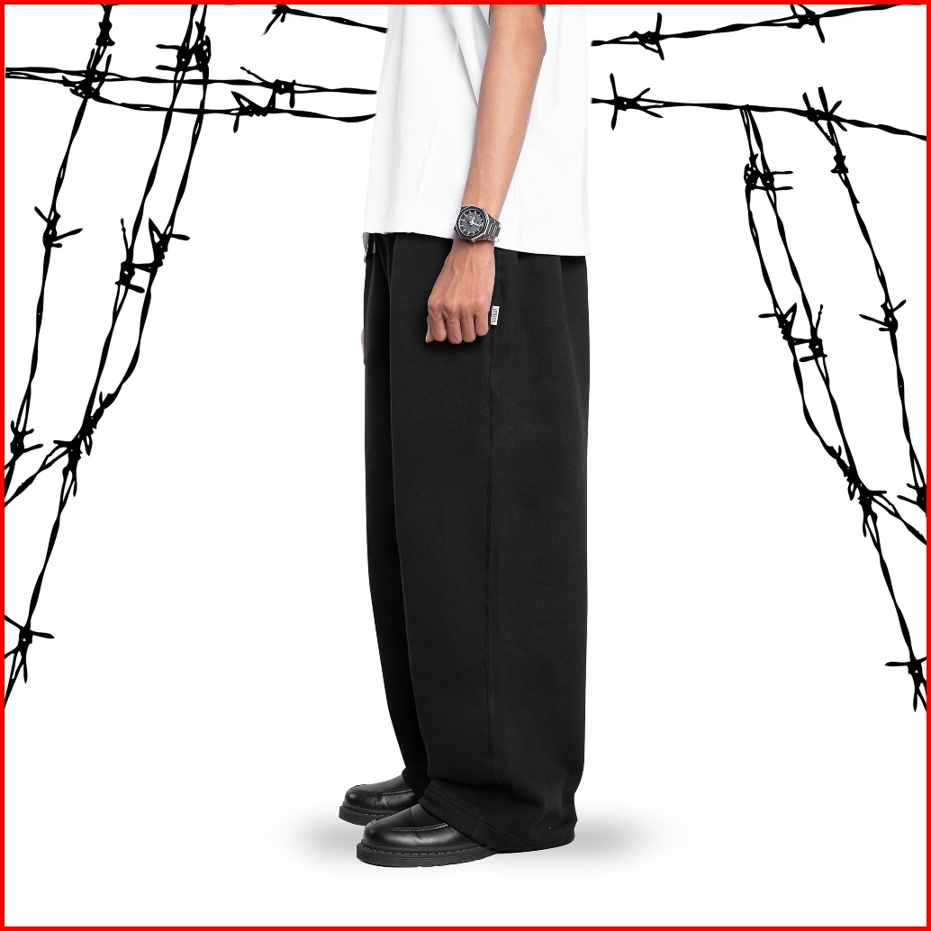 Lessegos Celana Panjang Baggy Fleece Polos Hitam