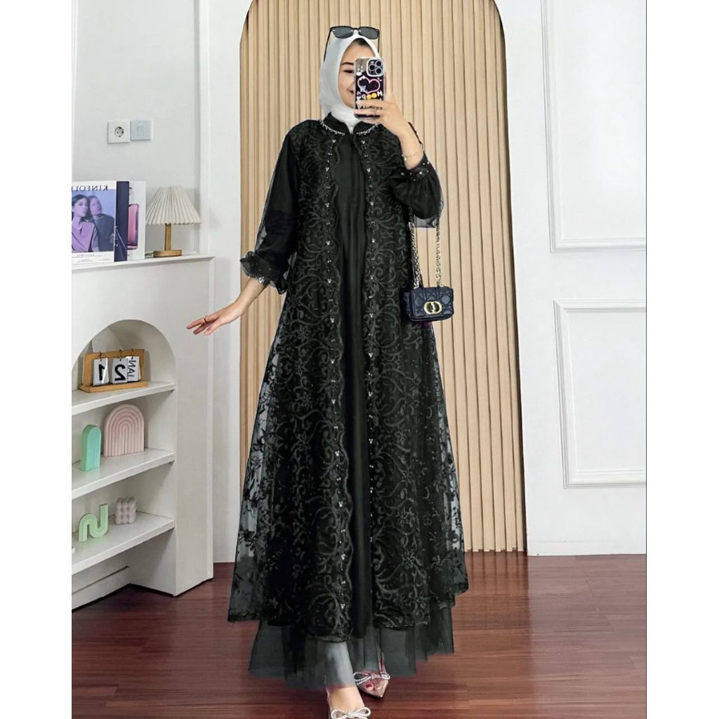 Nadine Dress Pesta Kondangan Terbaru Bahan Tille Mix Brukat Gamis Wanita Muslim Terbaru Kekinian
