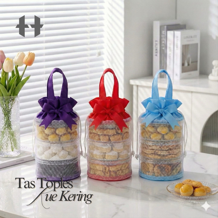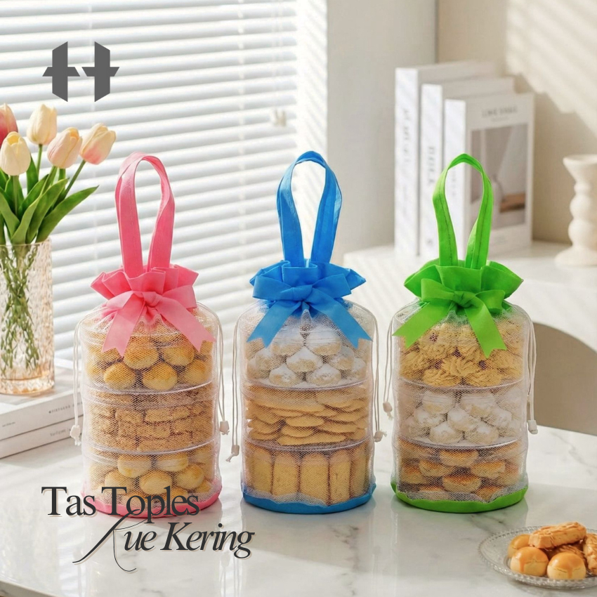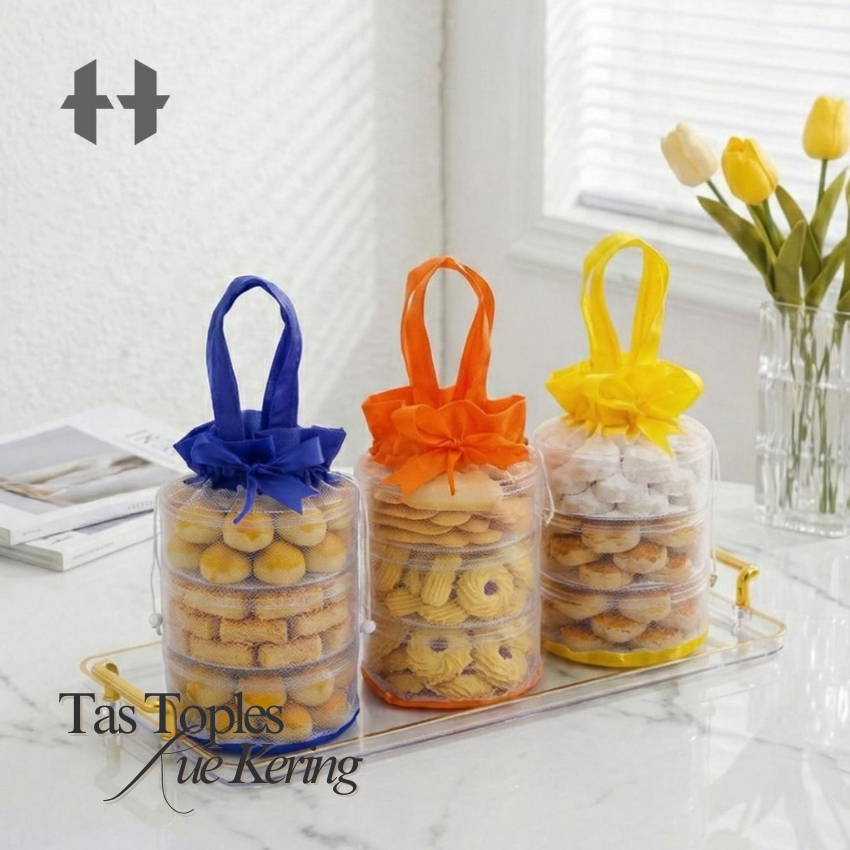 Tas Toples Kue Kering Lebaran Tile Premium | Ukuran 500gr | Isi 3 Toples | Spunbond Tebal | 8 Warna | Estetik Lebaran