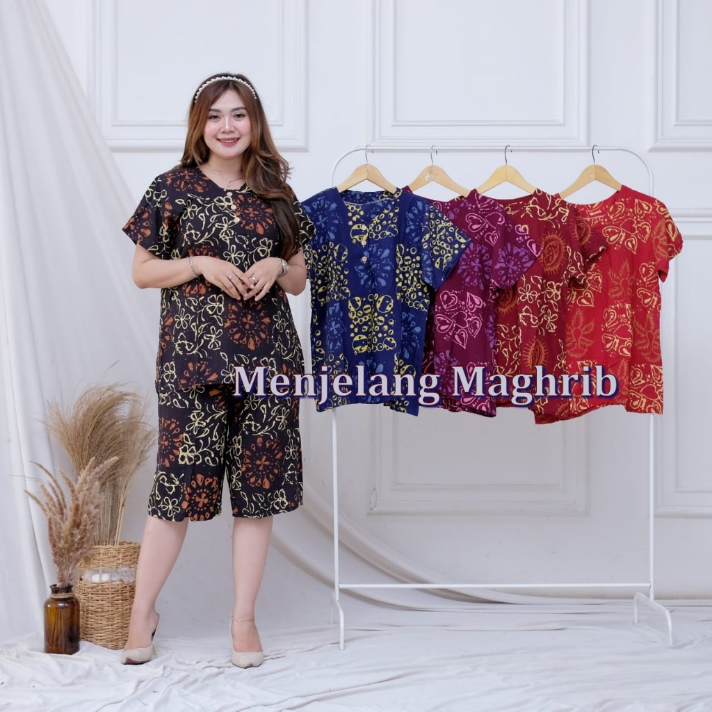 Batik Cap Setelan Celana Pendek Wanita Kancing Tiga