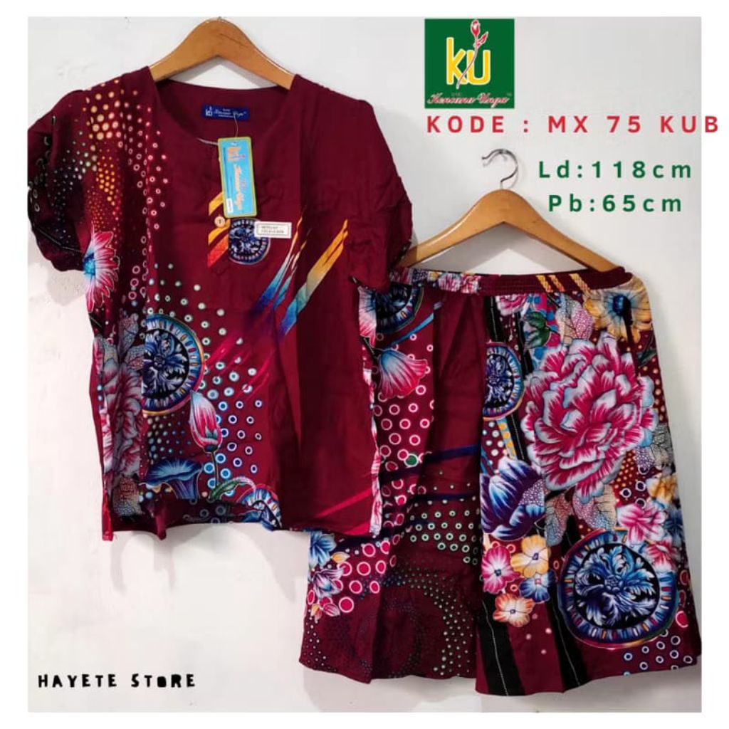 Batik Kencana Ungu Asli Setelan Maxi 75 KUB Lengan Pendek Terlaris Baju Tidur Wanita Label Biru Asli Ld 120cm Kancing De