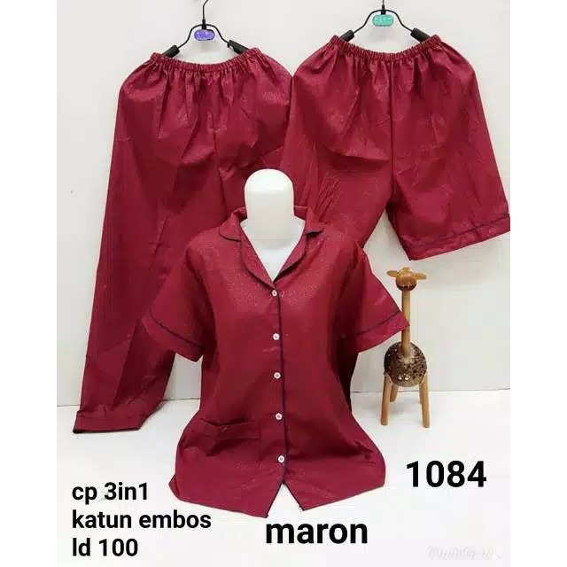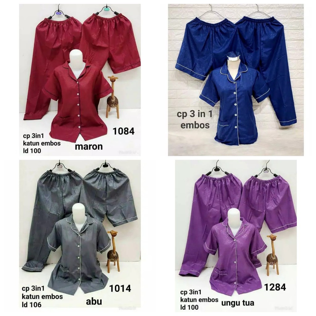 PLUTO Piyama Satin Embos 3IN1 Baju Tidur Wanita Dewasa