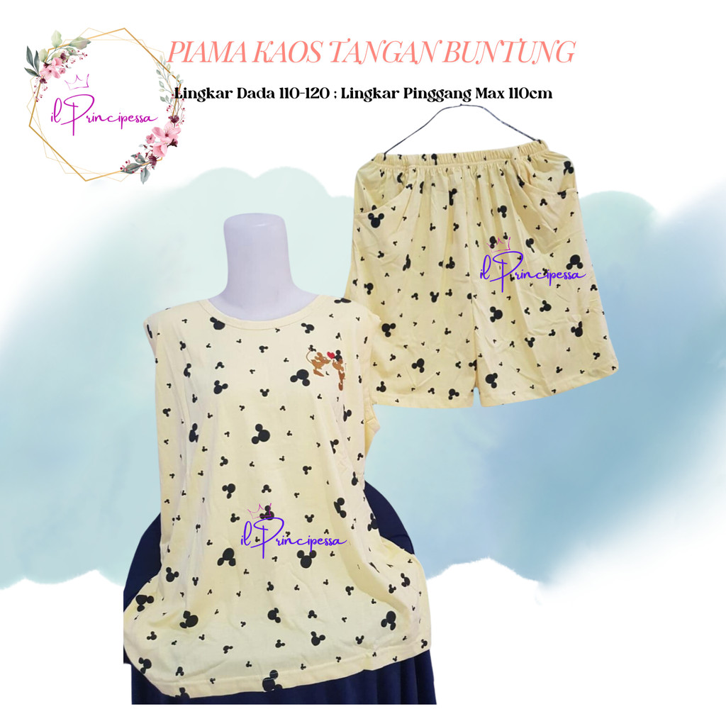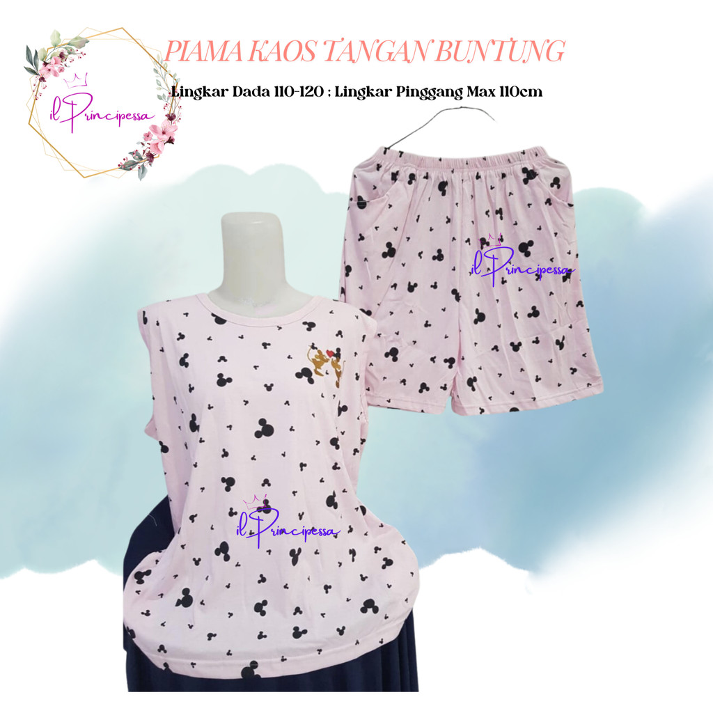 BAJU TIDUR PIYAMA TANPA LENGAN LD 110CM CELANA PENDEK - BAJU TIDUR KAOS KARTUN