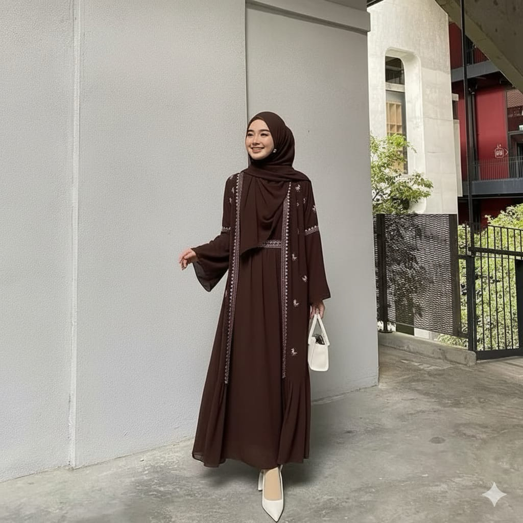 Gamis abaya safwa bahan ceruty babydoll full furing aplikasi bordir mewah elegant abaya wanita remaja kekinian