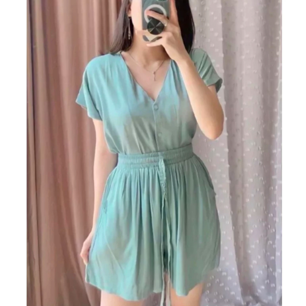 Babydoll Baju Wanita One Set Piyama Setelan Tidur Atasan Lengan Pendek dan Celana Pendek Bahan Katun