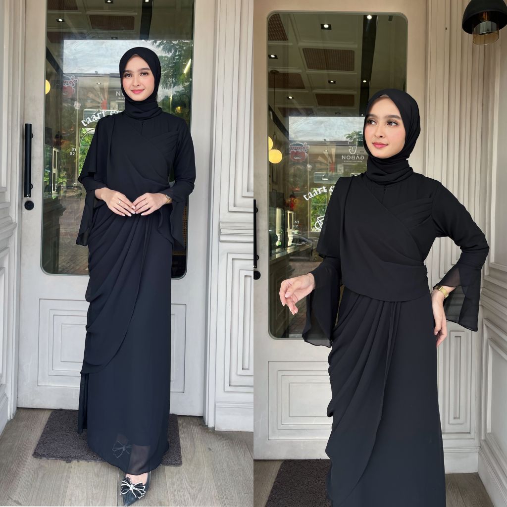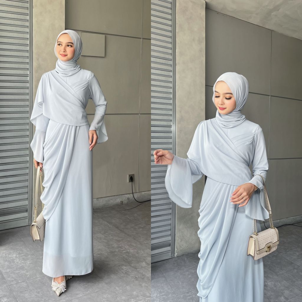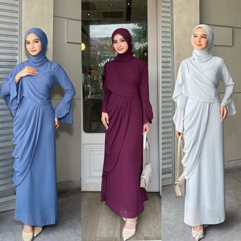 Salwa Dress Ceruti Ootd Hijab Fashion Simple Seragam Bridesmaid Kondangan Wanita,