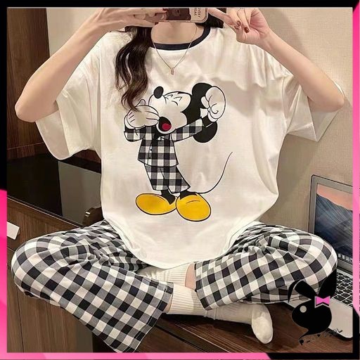 Baju Tidur Wanita Piyama Korea Lengan Pendek Celana Panjang Motif Kartun Lucu Setelan Tidur Murah Model Kaos Korea 1330