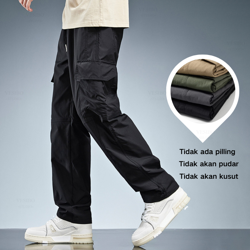 Celana Cargo Panjang Pria Korean Style Oversize Banyak Kantong Fashion Celana Pria Casual Cargopants