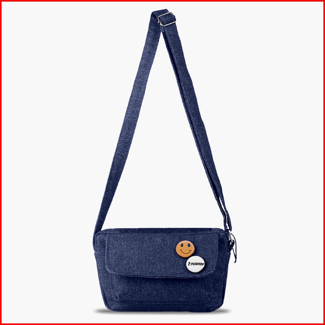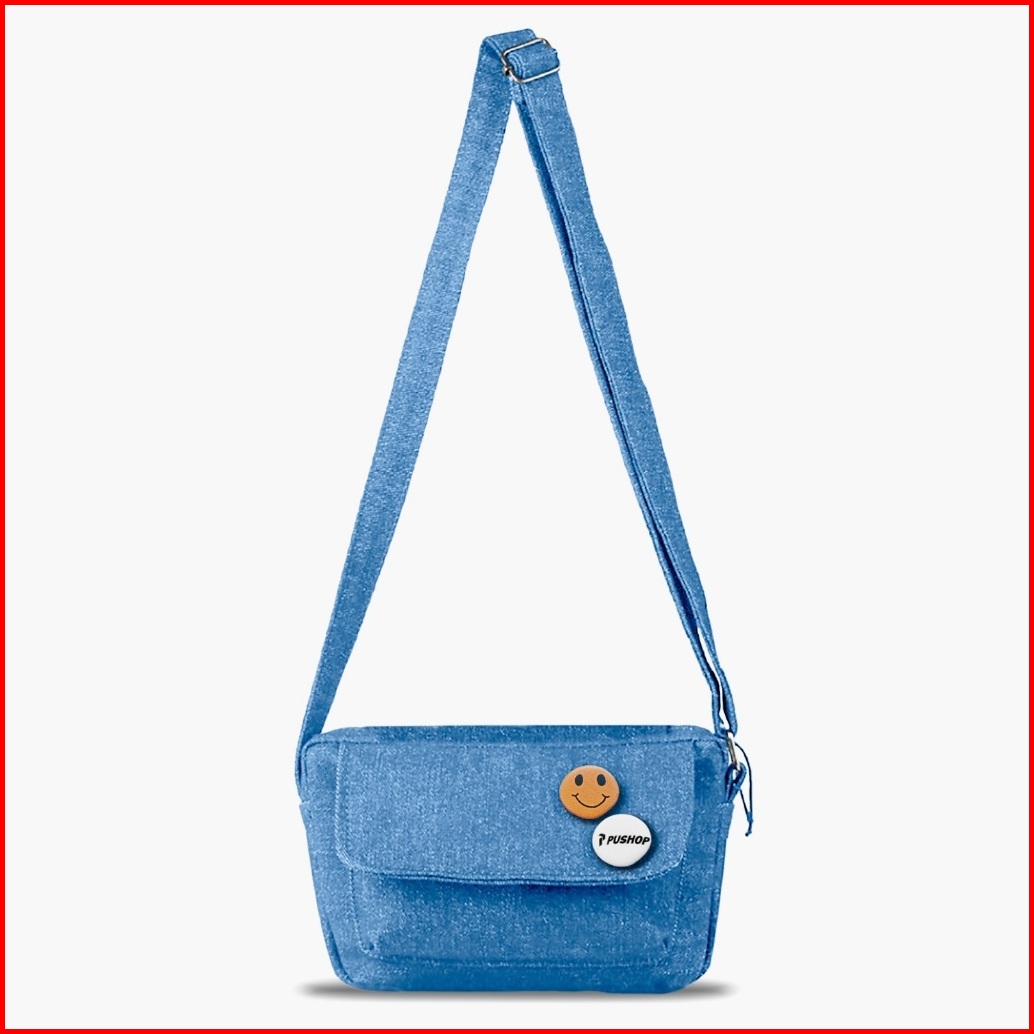 Pushop Tas Selempang Slingbag Denim Massanger Marsha Free Pin Bross