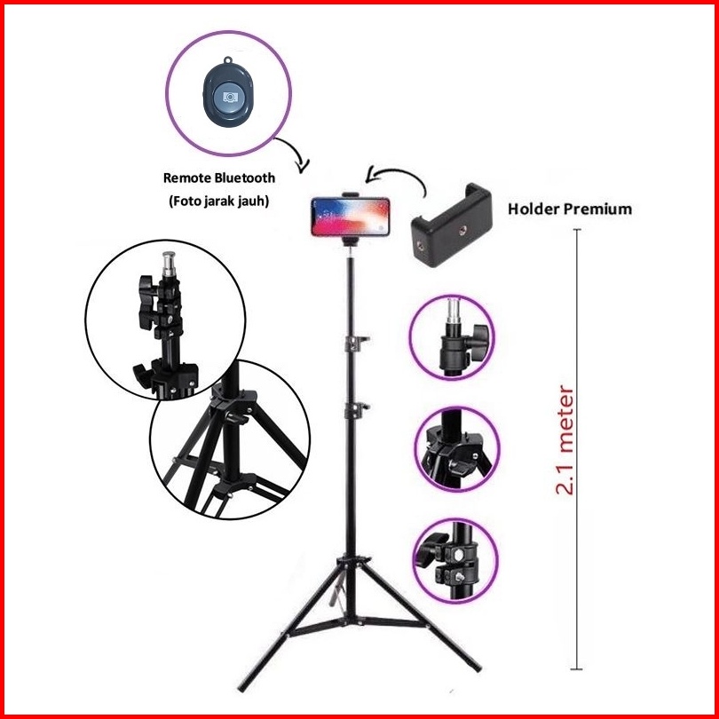 Paket Komplit Tripod 2.1m Mini Ball Head Ball Holder Premium Holder E Tomsis 1 Tombol