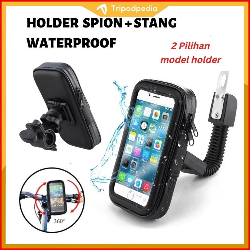 Tripodpedia Holder Hp Motor Spion Stang Waterproof 6.3inch Holder Motor Spion Dan Stang Anti Air