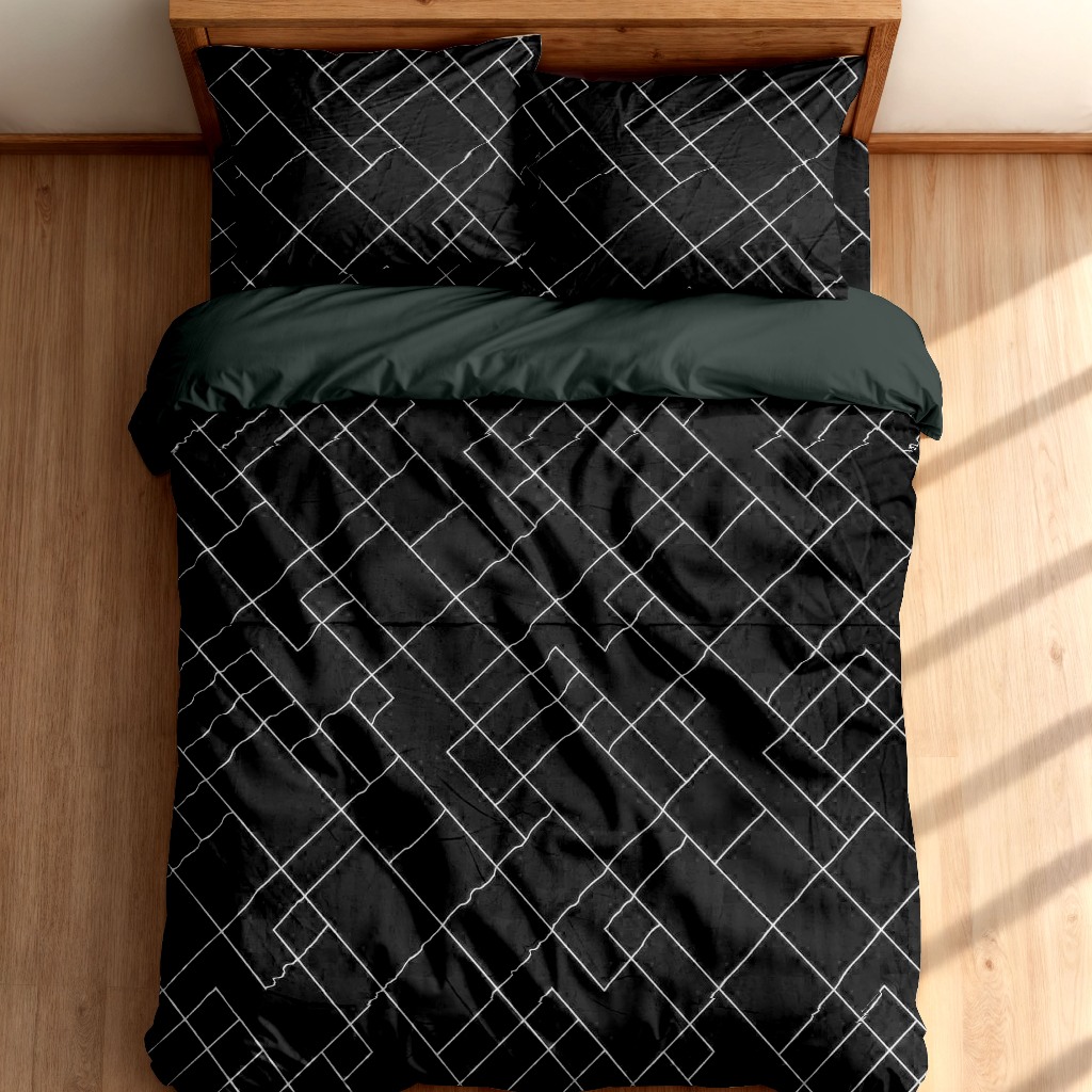 Bedcover Set Sprei Pajero Black & Dark Grey Ukuran Lengkap 90x200-200x200