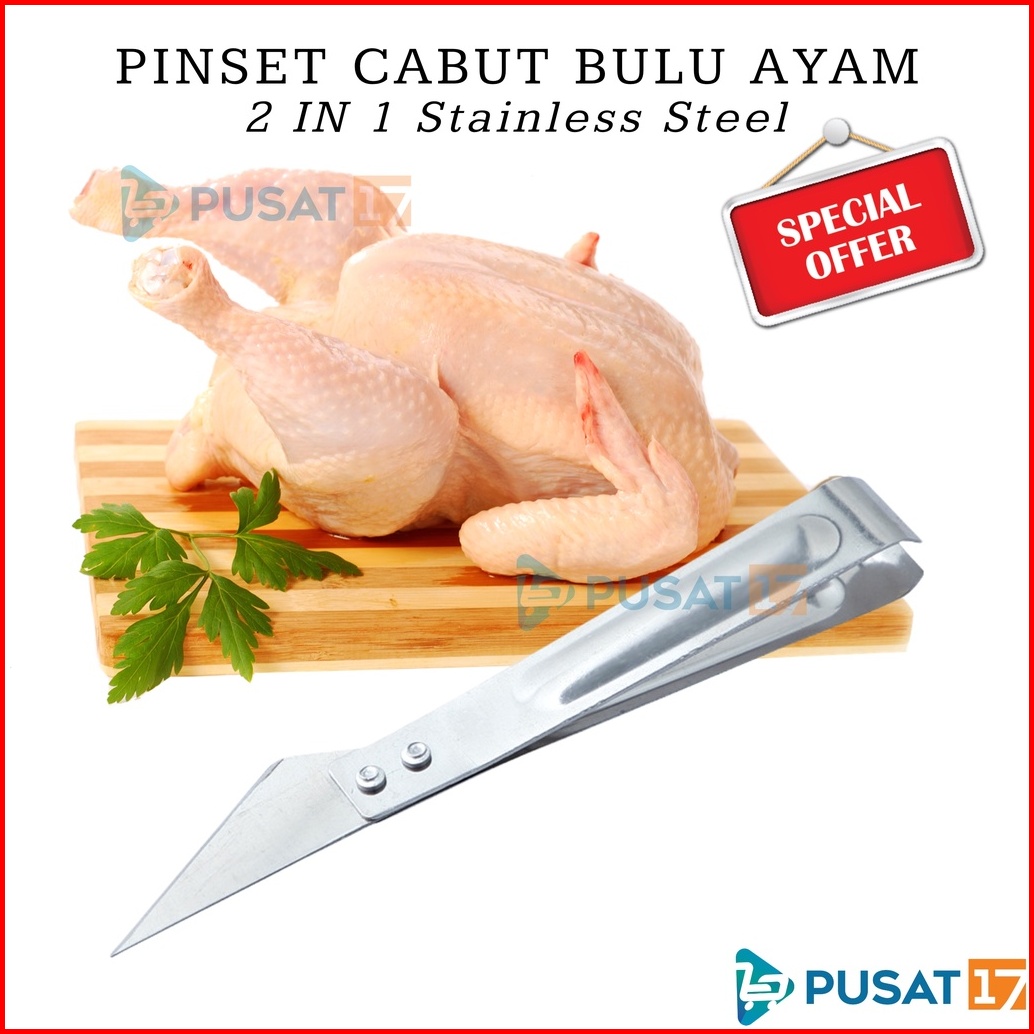 Pusat17 Alat Pencabut Bulu Ayam 2in1 Stainless Pinset Pencabut Bulu Ayam Tulang Ikan Pisau Dapur Pembersih Bulu Ayam Dap