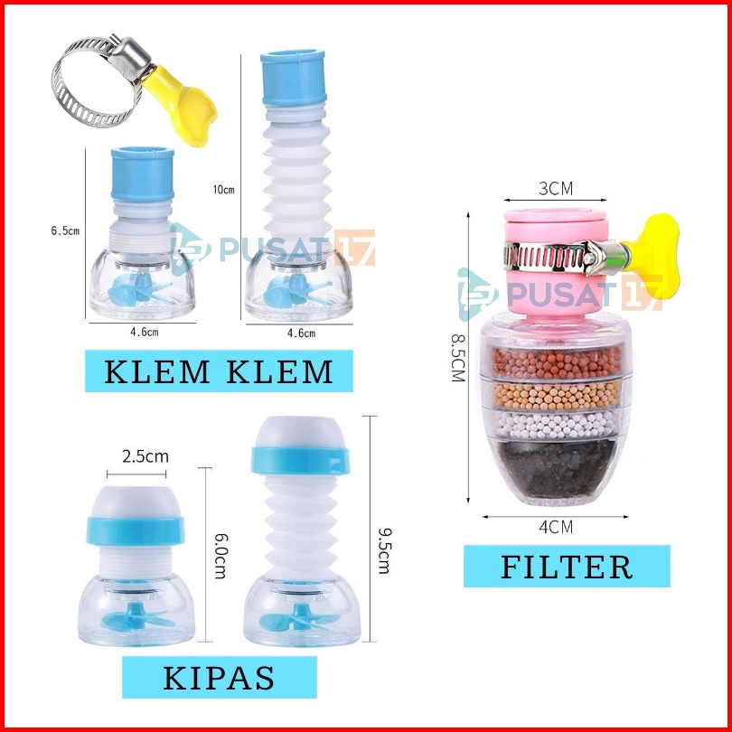 Pusat17 Sambungan Kran Air Saringan Filter 4 Batu 6 Lapis Sambungan Kran Keran Air Flexible Anti Splash Sambungan Kran A