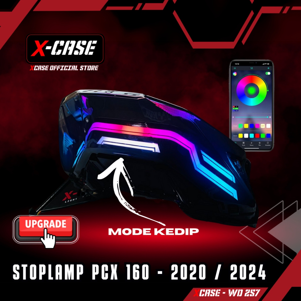 X-Case Lampu Stop Pcx 160 Lazy Luma RGB 200 Mode App Plus Tombol Click Manual Tahun 2020 2024 WD 257