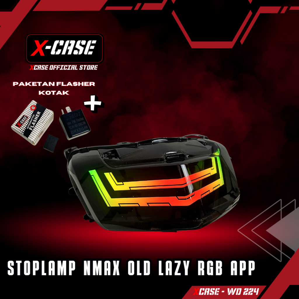 X-Case Lampu Stoplamp Nmax Old Lazy Frame 200 Mode ApK Android Ios Tombol Click Running RGB WD 224