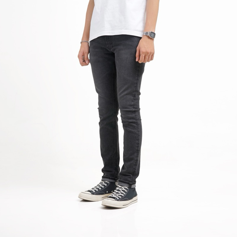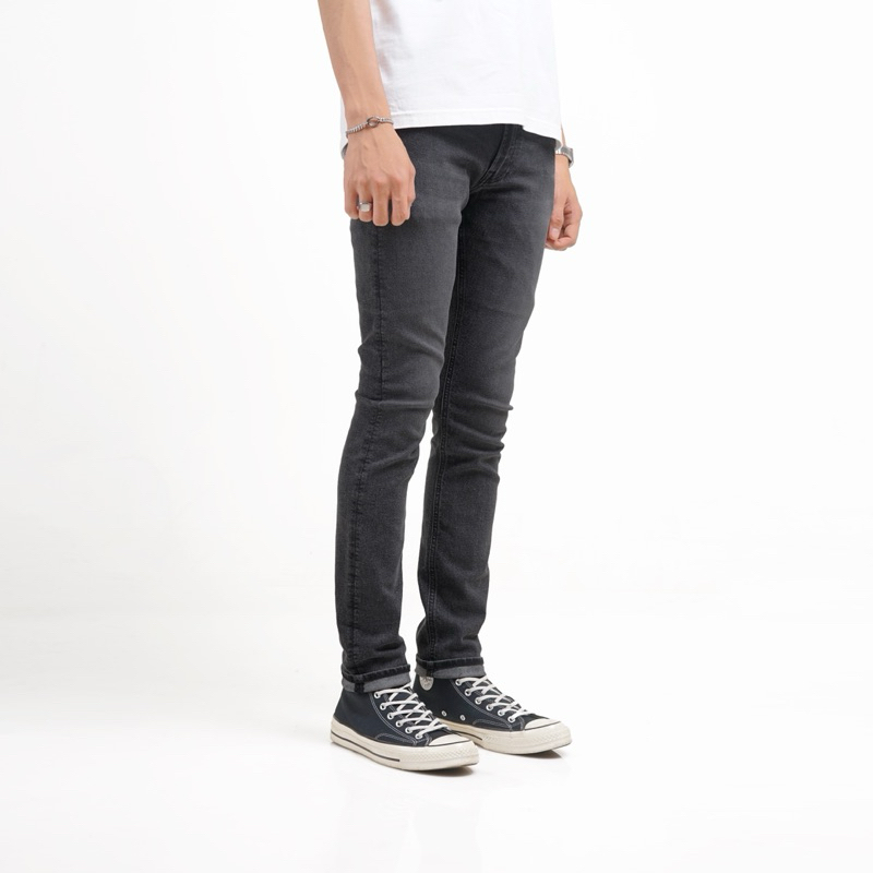 Volkvog Jeans Utah Grey Celana Panjang Washed Denim Pria Superslim Abu Gelap