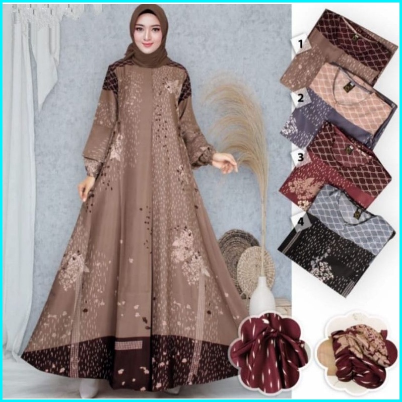 Gamis Silk Premium Motif Bunga Terbaru Murah