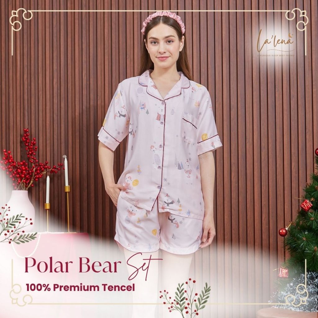 Polar Bear Set | Piyama Wanita TENCEL Premium Set Baju Tidur Lengan Pendek Celana Pendek