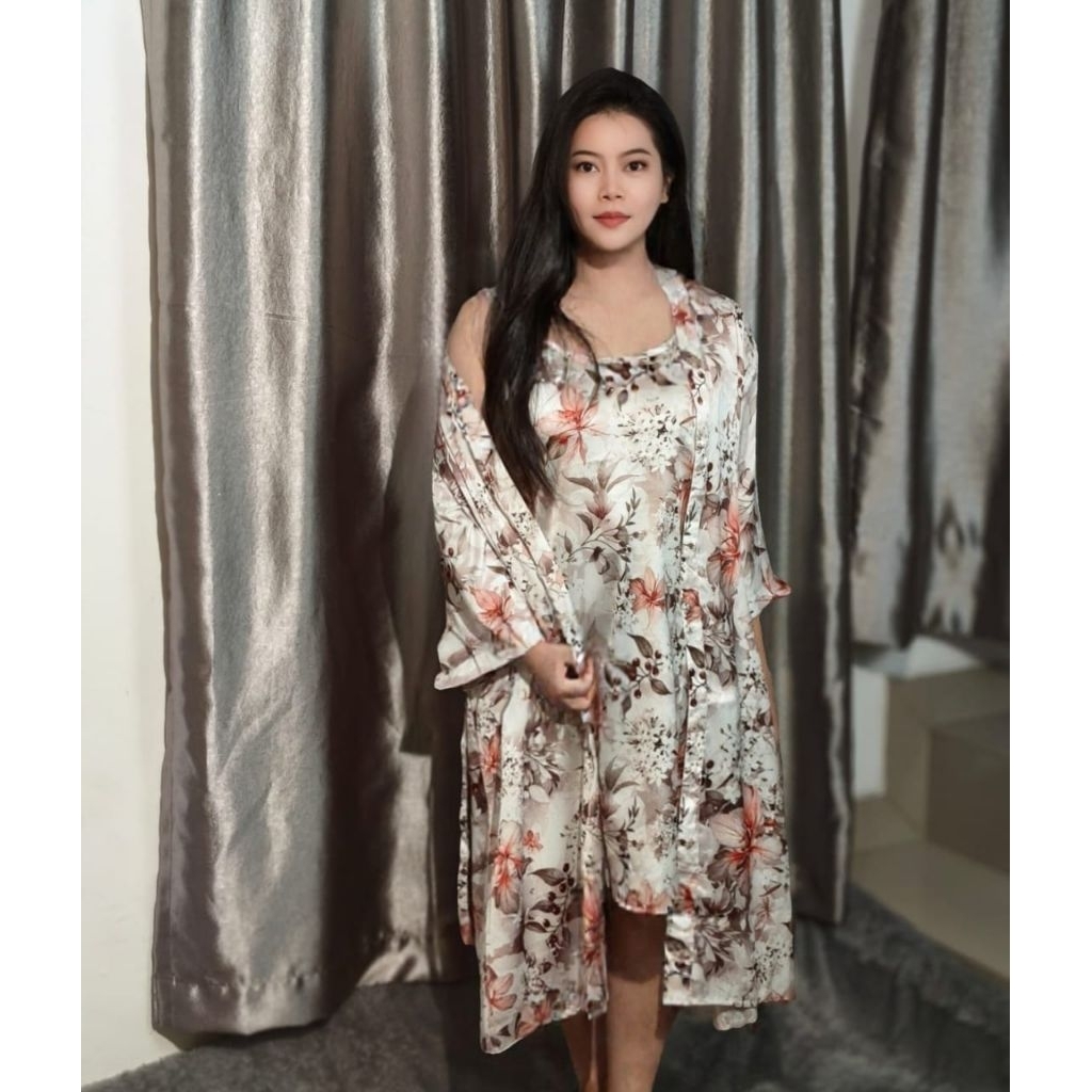 Baju Tidur Kimono Set | Sleepwear Premium Satin Snow