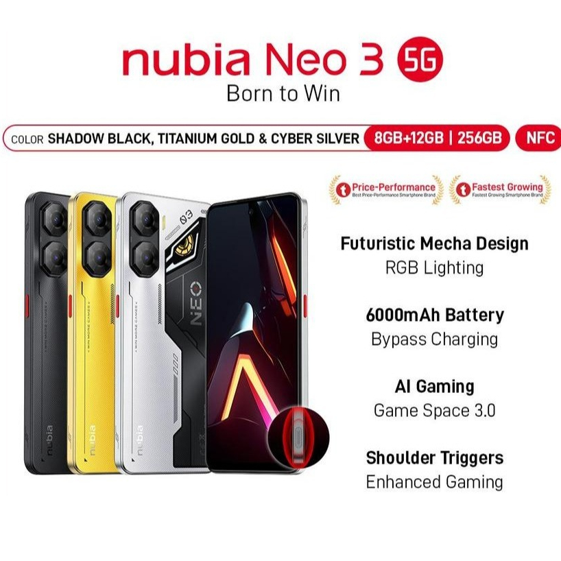 Nubia Neo 3 5G RAM 20 GB (8 + 12 GB) ROM 256GB GAMING PHONE WITH SHOULDER TRIGGER 6000 mAH Fast Charging 33W Garansi Res