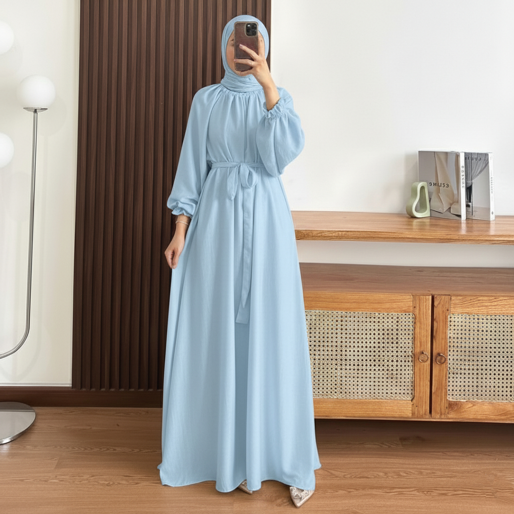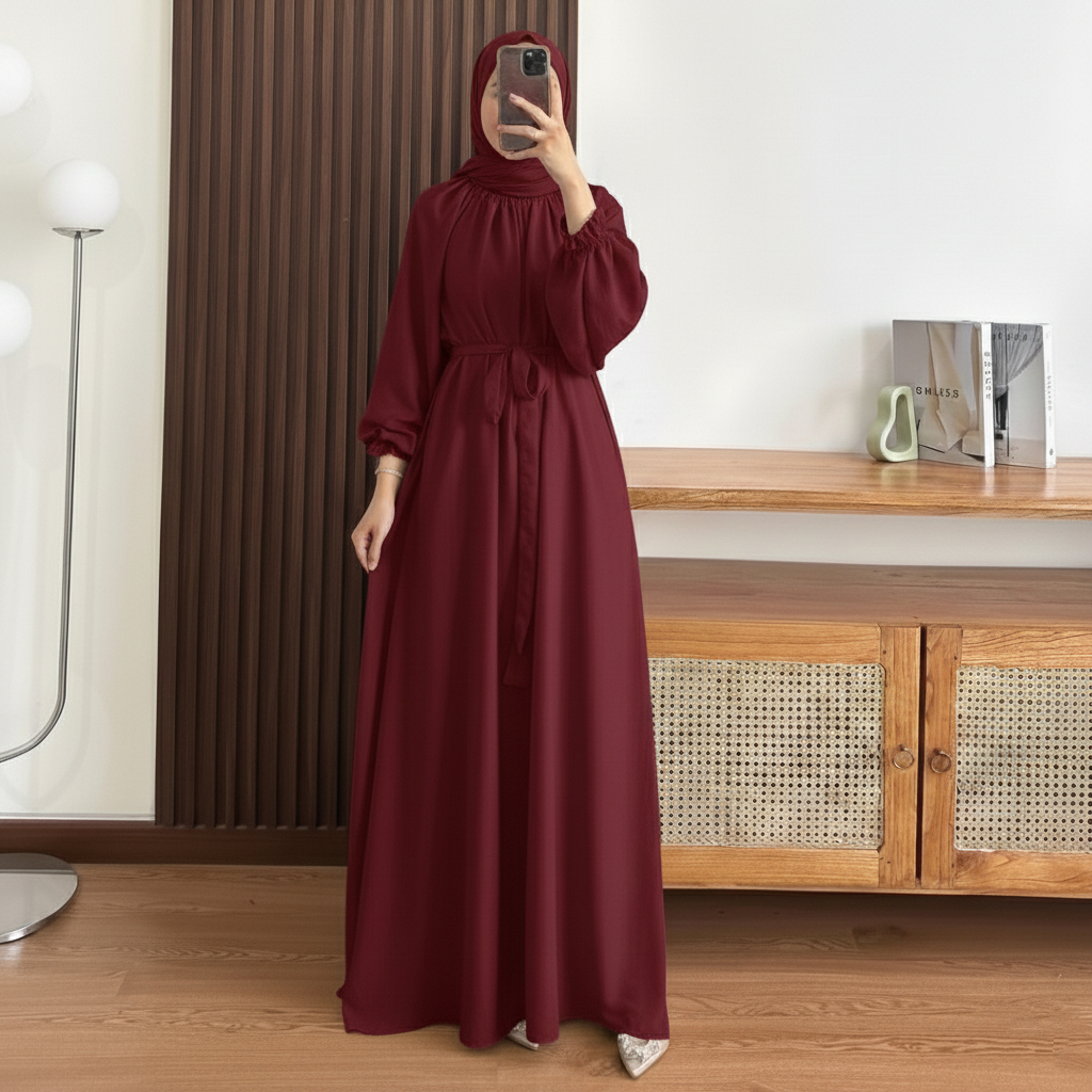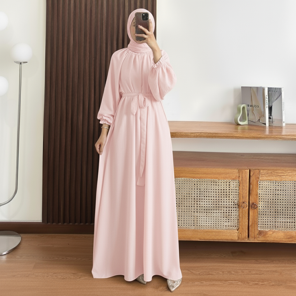 Gamis Crinkle Airflow Wanita Muslim Tangan Raglan Puff Sleeve Elegan Modis Adem Kekinian S-XXXL