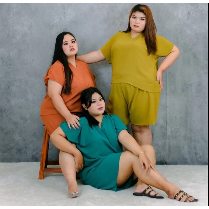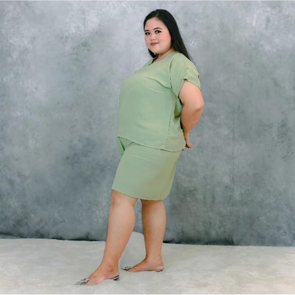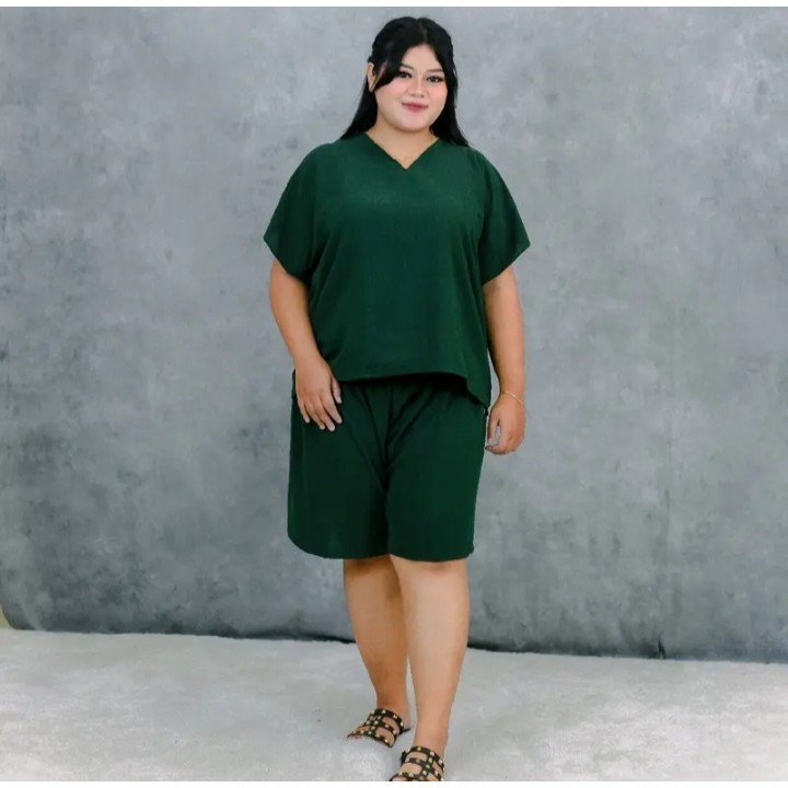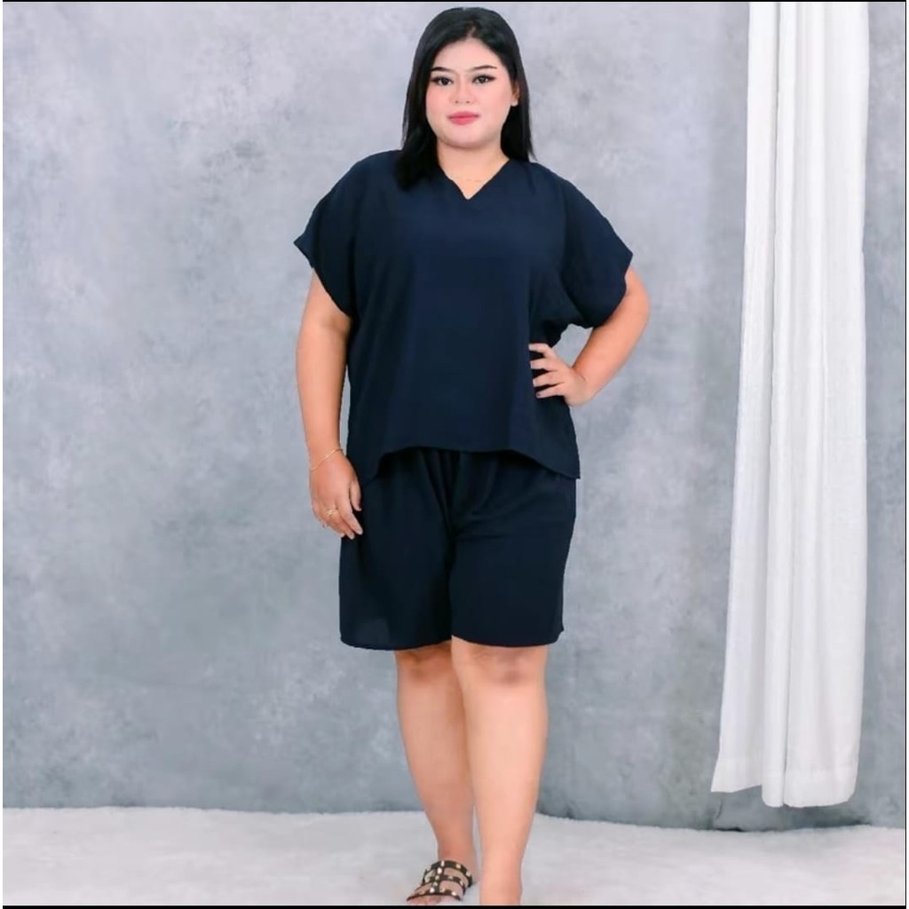 SETELAN JUMBO/ONE SET JUMBO/SETELAN KRINGKEL/BAJU MURAH/SETELAN WANITA/ONE SET V NECK