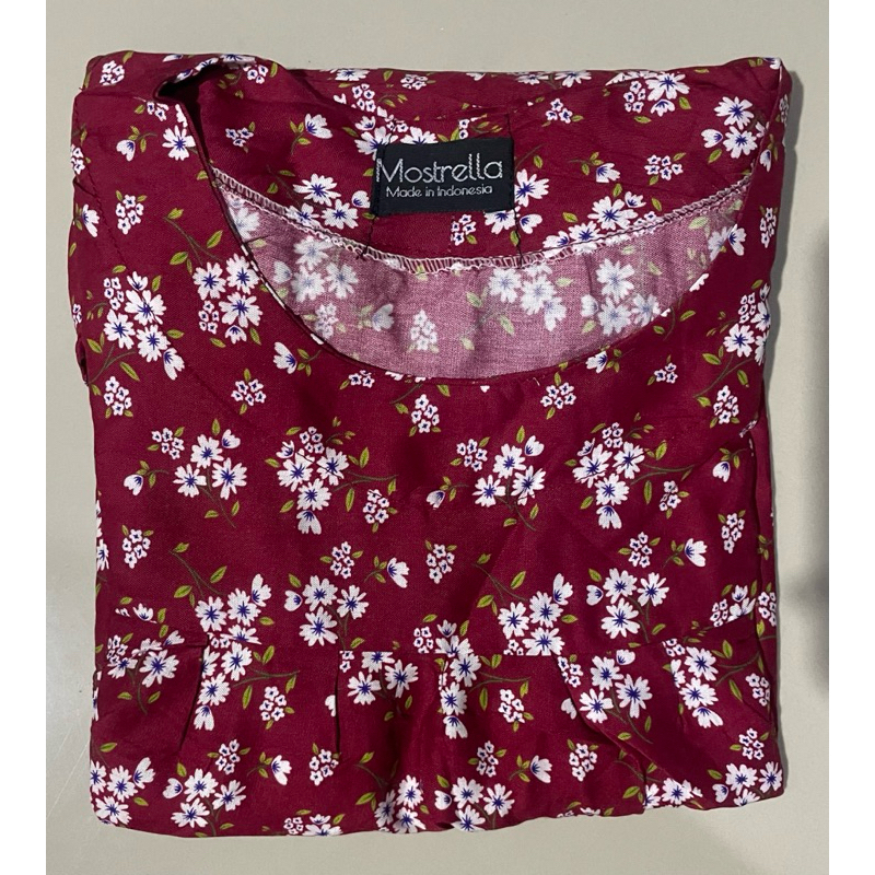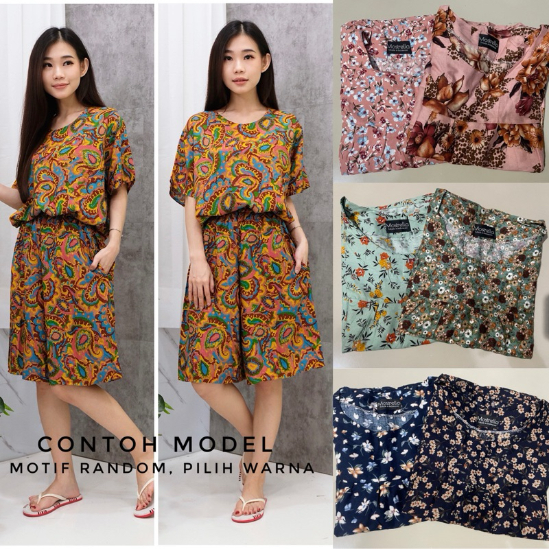 Setelan Piyama Baju Tidur Wanita Babydoll Batik / Rayon Stelan Lengan Pendek Celana Panjang Kulot-1 Motif Bunga Abstrak