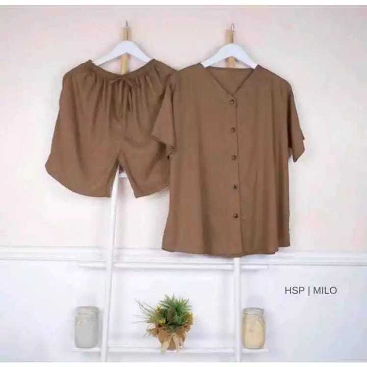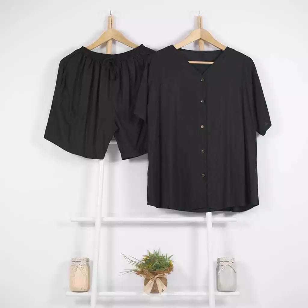 Piyama Kancing Pendek Rayon Premium Wanita Kekinian