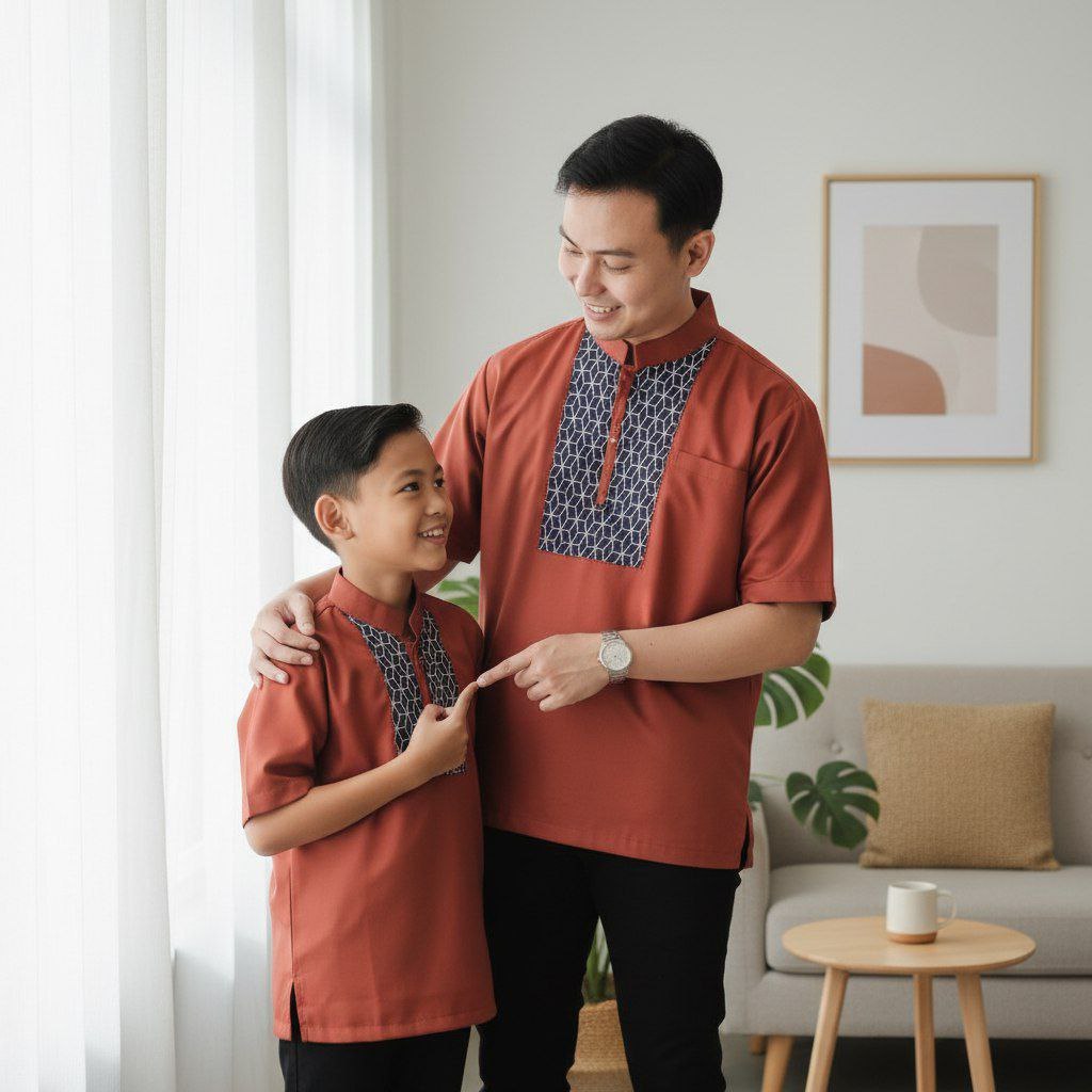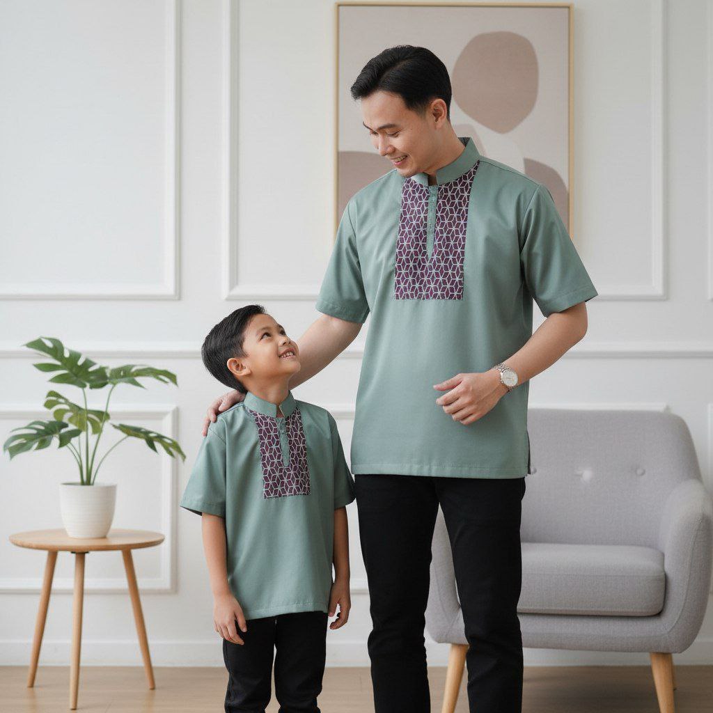 Baju Koko Couple Ayah Dan Anak Lengan Pendek Adem Motif Etnik TERBARU 2026