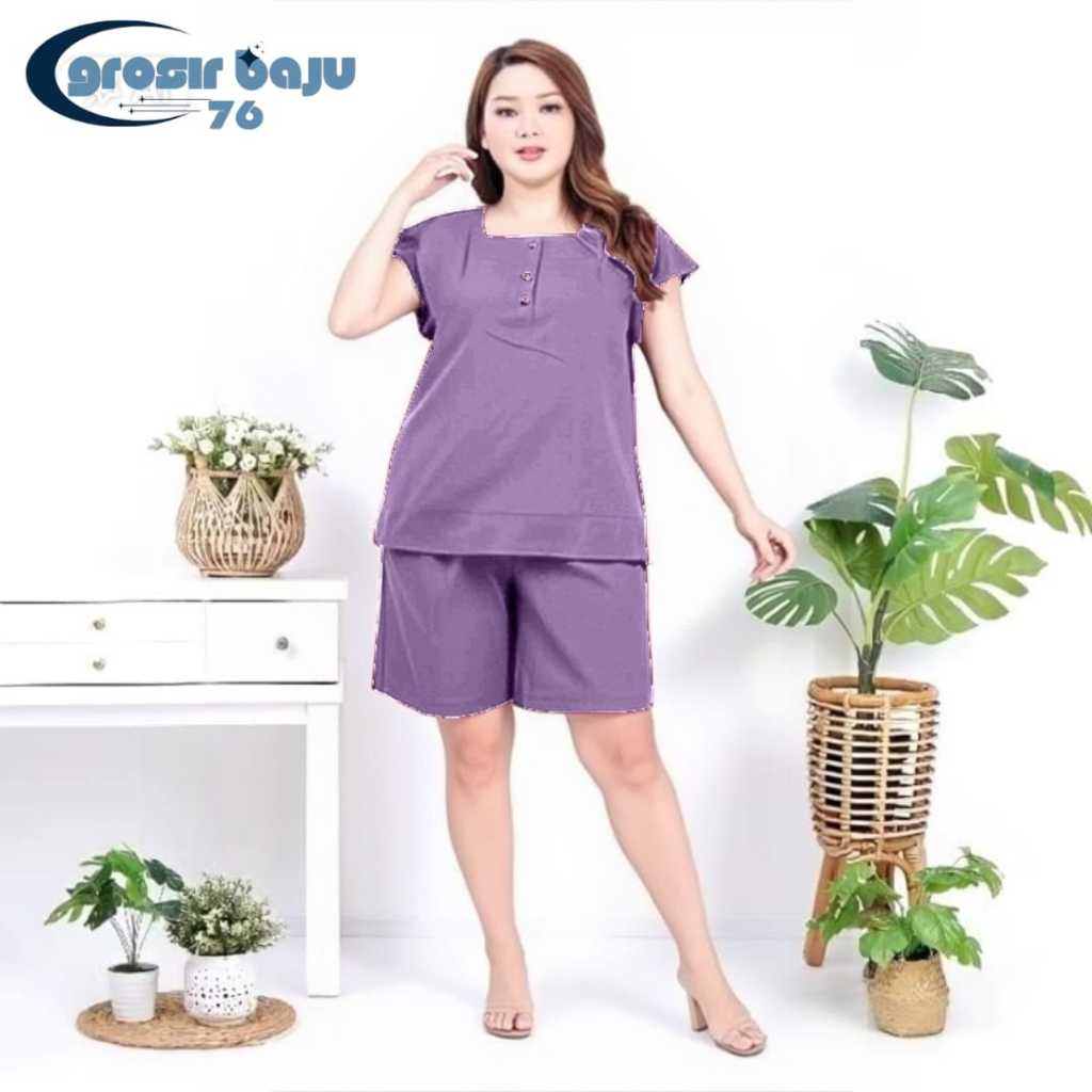 SETELAN MODEL BANGKOK POLOS WANITA JUMBO | SETELAN HOTPANT KANCING BUSUI | PIYAMA BAJU TIDUR