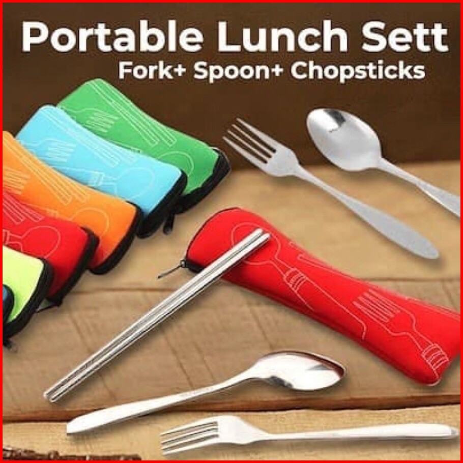 4 In 1 Sendok Set Traveling Sendok Pouch Alat Makan Stainless Stell -sendok Garpu Sumpit