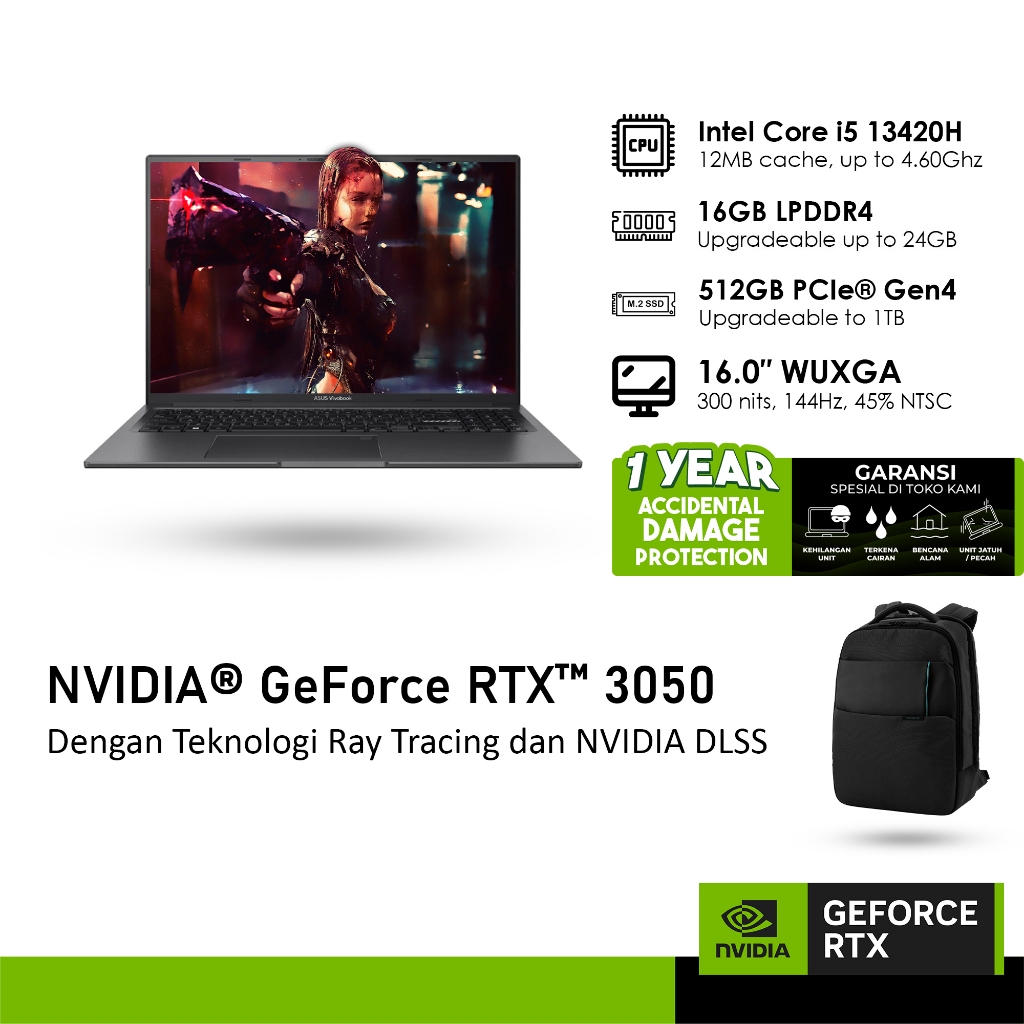 ASUS GAMING K16 K3605VC GeForce RTX™ 3050 4GB - i5 13420H 16GB 512GB WINDOWS 11 16.0 WUXGA 144HZ