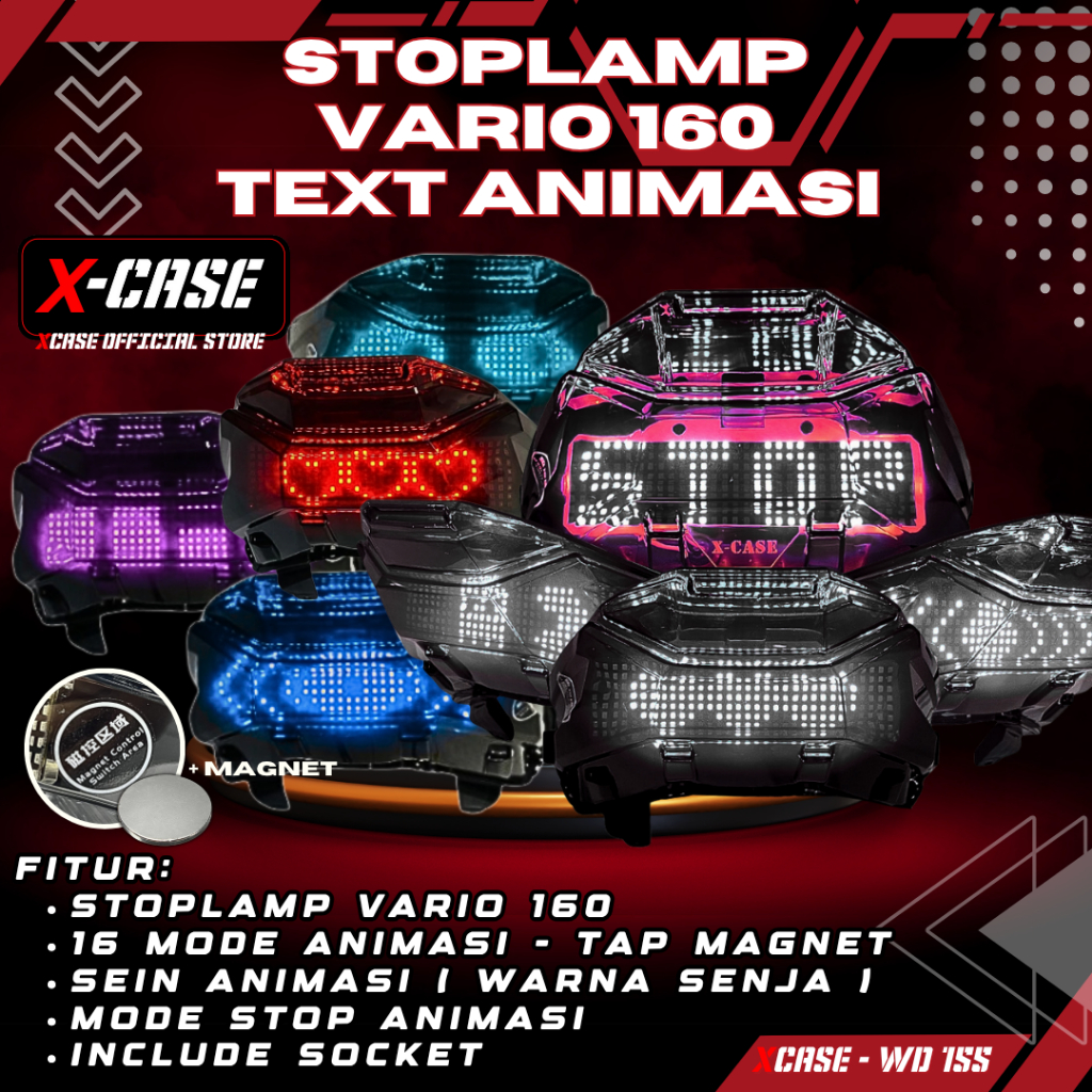 X-Case Lampu Stop Vario 160 CBS ISS Otomatis Text New Running Magnet New Stoplamp WD 155