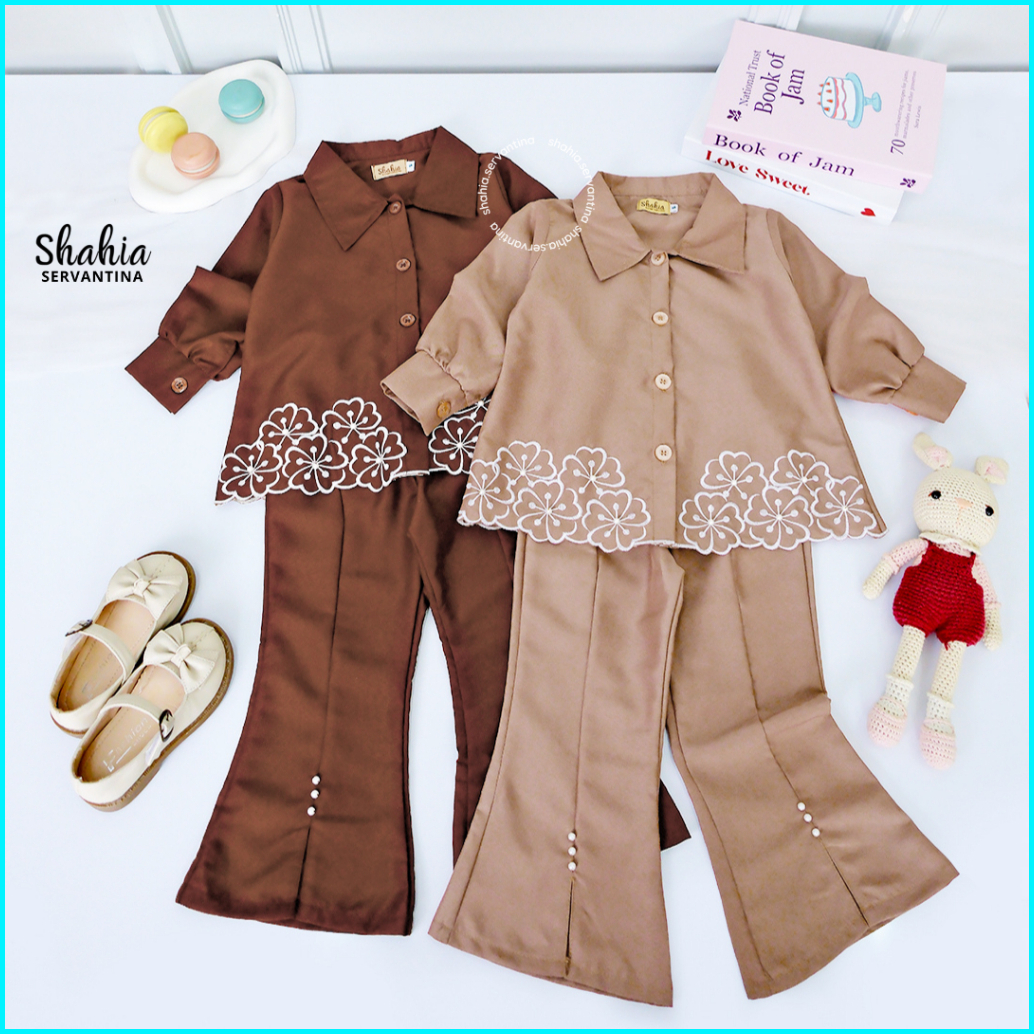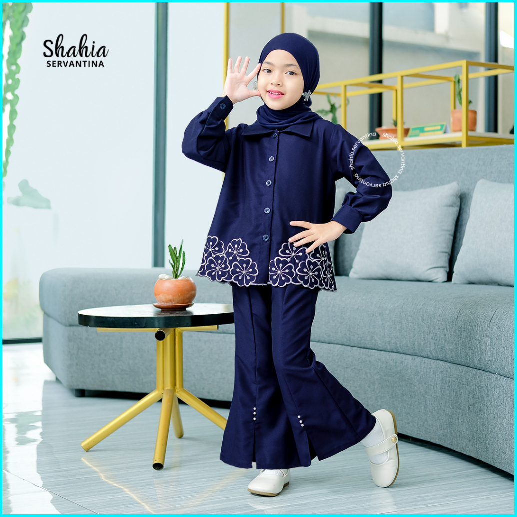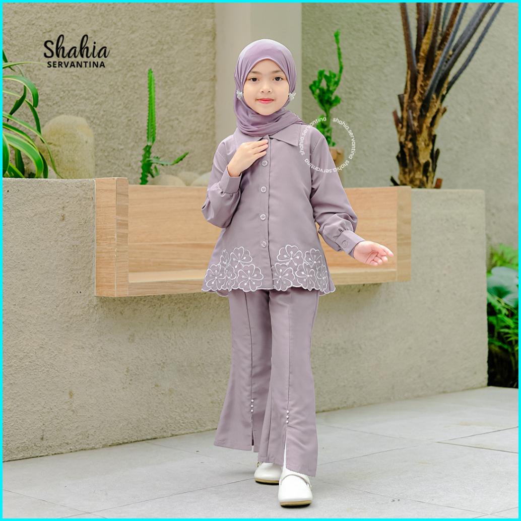 Shahia Servantina - Fresia Oneset Bordir Setelan Celana Anak Perempuan Muslim Panjang